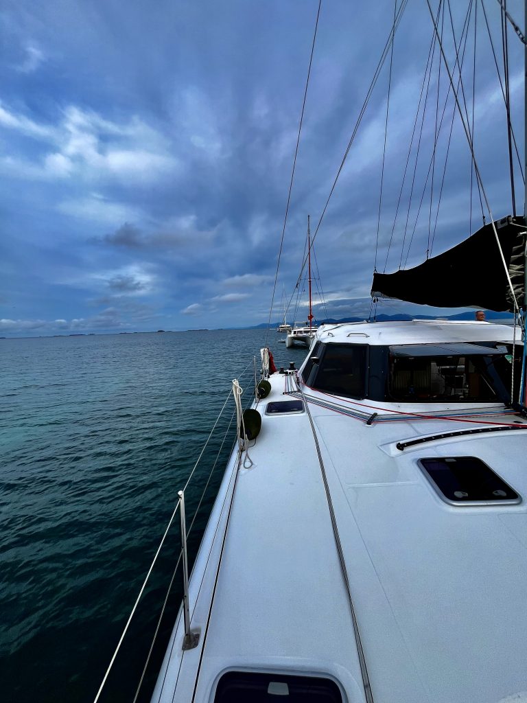 Neuer Tag, neues Glück. Ich schicke Klaus zum Schnorcheln, bevor uns die Gewitterwolken erreichen. Er kommt ziemlich begeistert zurück. Viele Fische, große Fische, 3 Baumstämme und 1 Adlerrochen, ein großer!, ist seine optische Ausbeute. Der Adlerrochen
