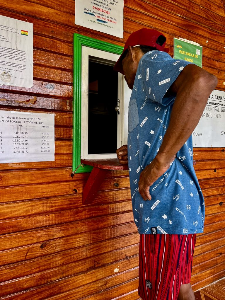 Eigentlich unnötig aber dennoch nett sagt er uns, welche Papiere der „Beamte“ von uns haben möchte, was wir zu zahlen haben und für welches Gebiet die ausgestellte und gestempelte Erlaubnis gilt. Wie? Wir dachten die gilt für das gesamte Guna Yala Gebiet? Nee, für einen weiter entfernten Inselbereich müsste man vor Ort nochmal bezahlen. Aha. Jetzt werden 50 $ für Yuti und 20 $ pro Person fällig, also 90 $ insgesamt. Dann bekommen wir unser Permit. So einfach ist die Verständigung allerdings nicht! Keiner spricht wirklich Englisch. Es ist ein Kauderwelsch aus Englisch, Spanisch und Guna. Oft raten wir nur, was wohl gemeint sein könnte. Soweit so gut, jetzt fragt er uns, ob wir noch Obst und Gemüse kaufen möchten? Joo, das wäre nicht schlecht, meine ich. Wo hat er denn seine Ware? Bis wir verstehen, dass er mit uns in unserem Dinghy zu seiner Insel fahren möchte… Okay, 🤔 können wir machen, liegt ja alles recht dicht beieinander. Und so düsen wir los zu der Insel, wo die 6 Weiber herkamen…