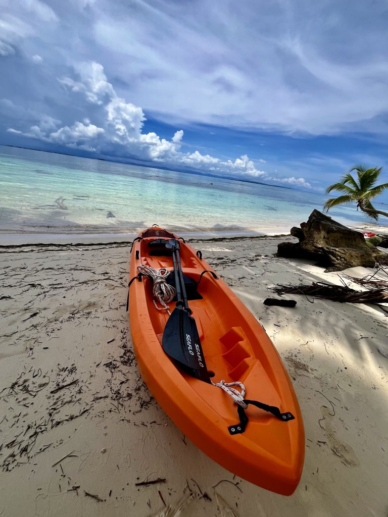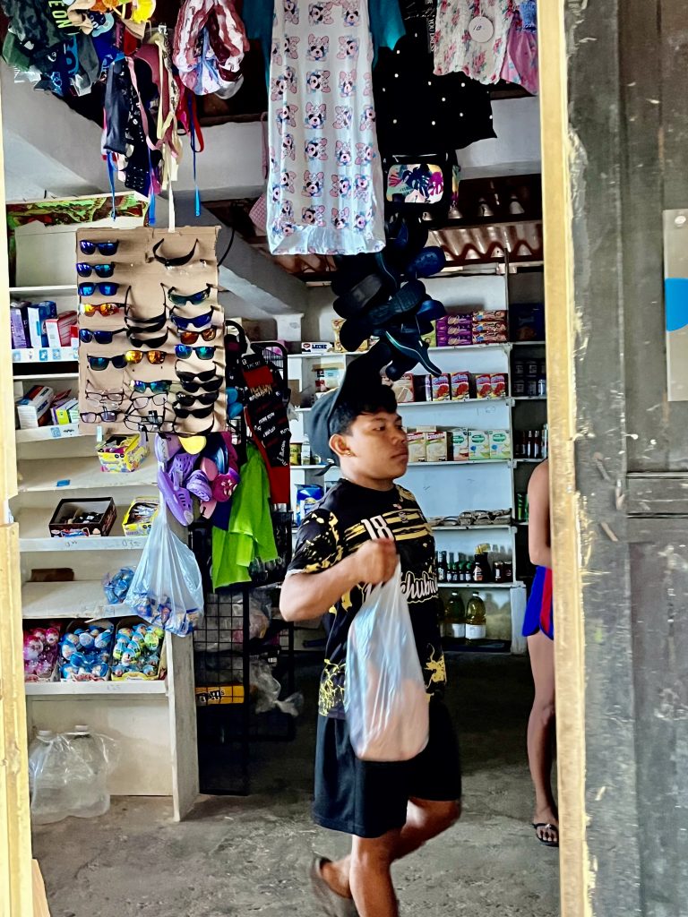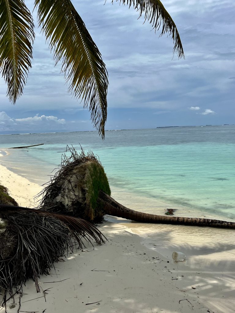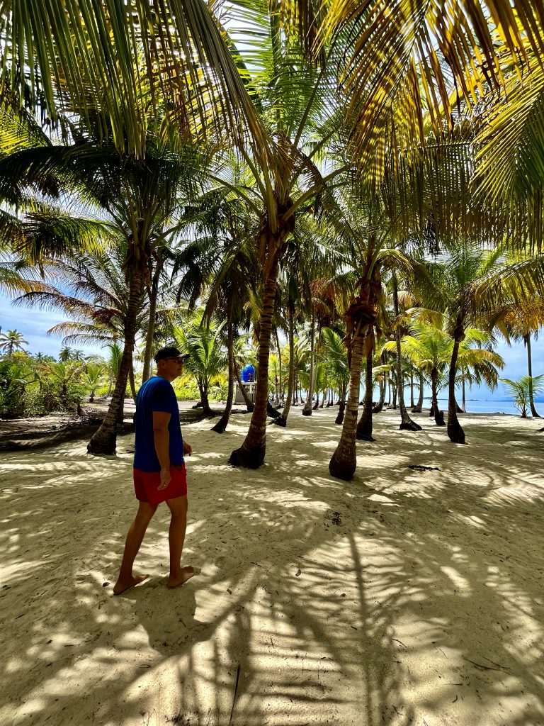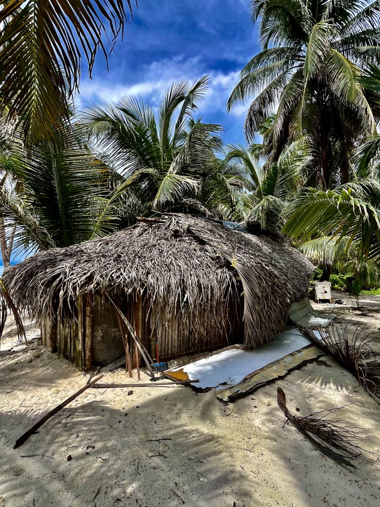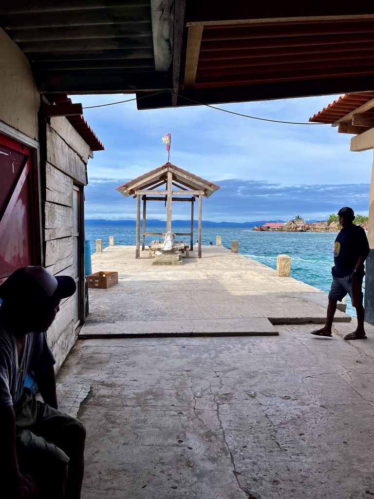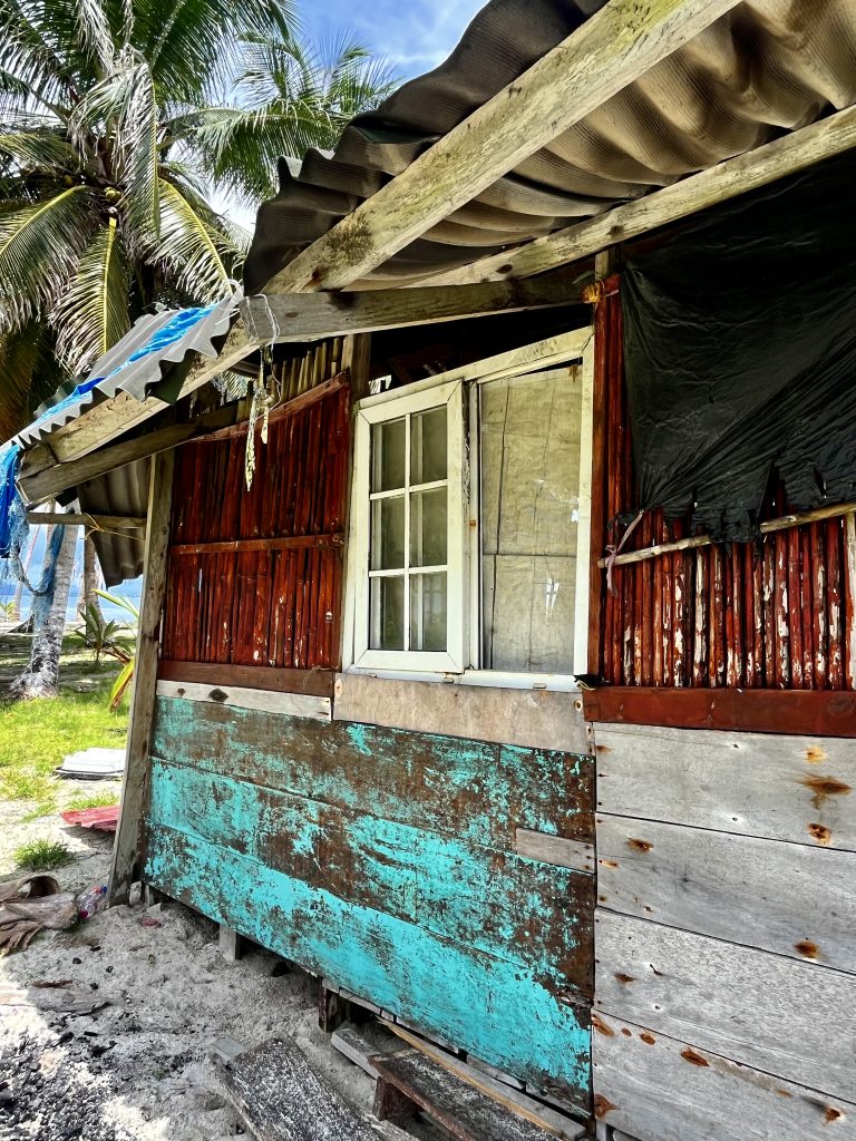 Er hat schon eingekauft, jetzt kaufe ich, Bananen, Zwiebeln, Tomaten und Gurken. That‘s it. Kurzer Small Talk mit Rotzis Freunden, dann geht’s zurück zum Dinghy. Er zeigt uns noch die Schule, den Volleyball-Platz und die Krankenstation, auf der es ausschließlich „Panamamedizin“ gibt. Lustig, so nennt er die westliche Chemiemedizin 💊, denn sie haben parallel dazu noch ihre eigene, traditionelle Medizin 🌱🍄☘️🪸… Am Dinghy angekommen, geht’s wieder zurück zu El Porvenir, um ihn dort abzusetzen. Er bekommt ein 10 $ Dankeschön-Trinkgeld und wir tuckern zurück zu Yuti. Anker lichten und ab zu den Chichime-Cays. Unterwegs kommen wir an anderen kleinen Inseln vorbei. Alle sind klein, kleiner am kleinsten und sehr flach. Bei Flut, und die ist hier nur 30 cm, ist der Strand drumherum weg.
