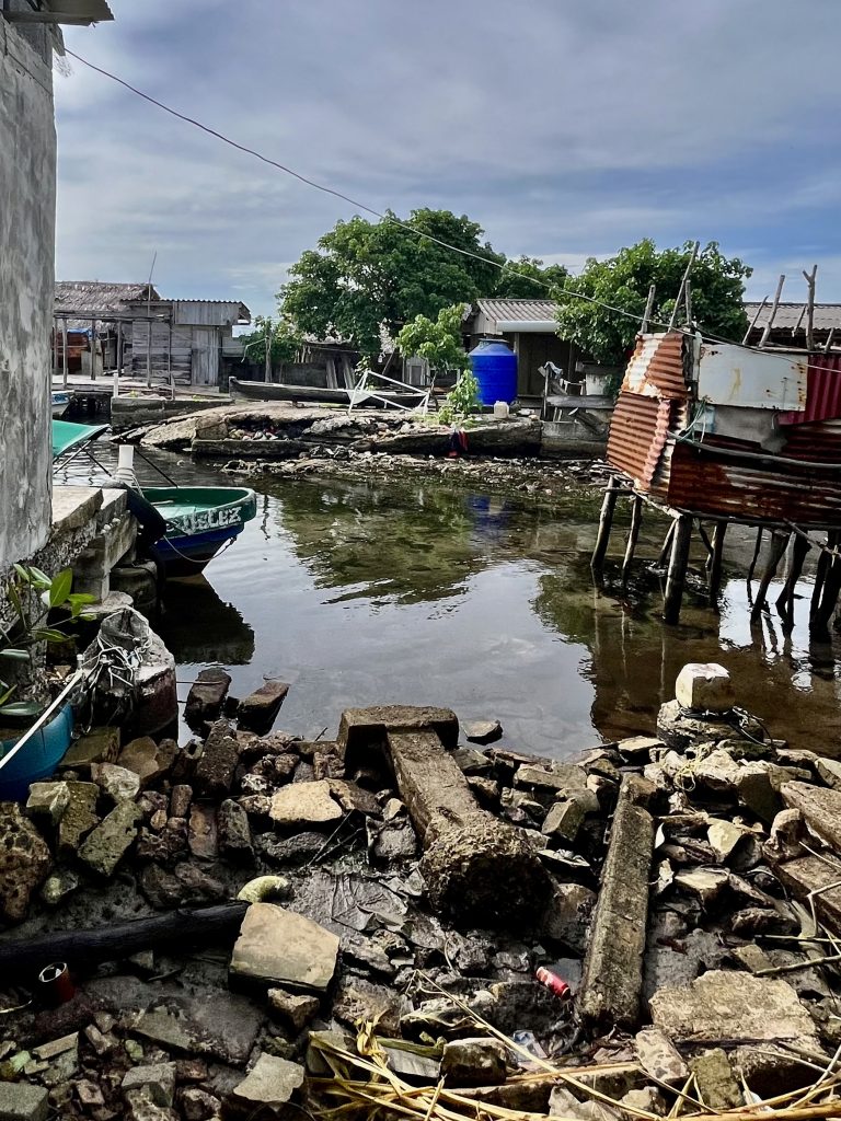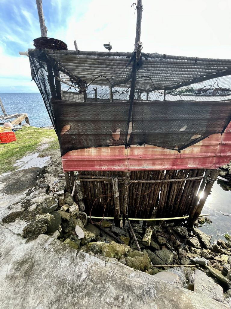 Als erstes sehen wir ein Langusten-Haus, eine Art Fangstation, dann Müll und Bauschutt.