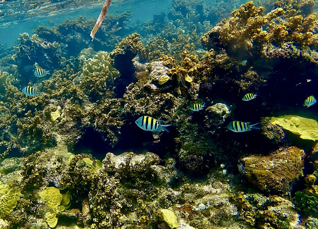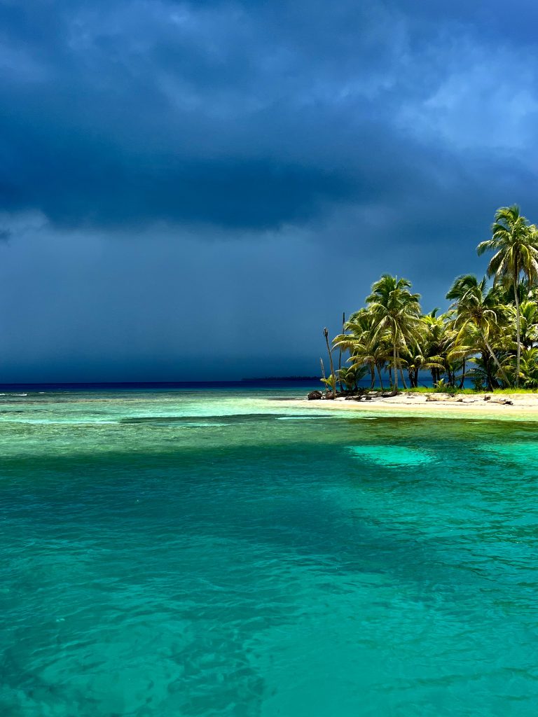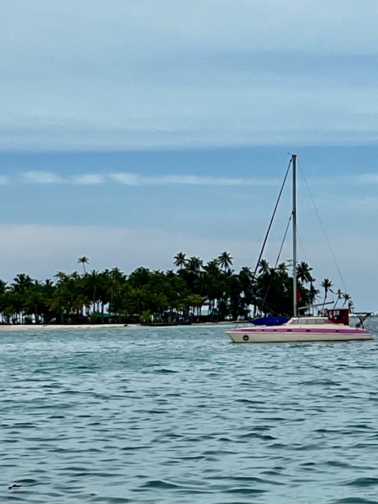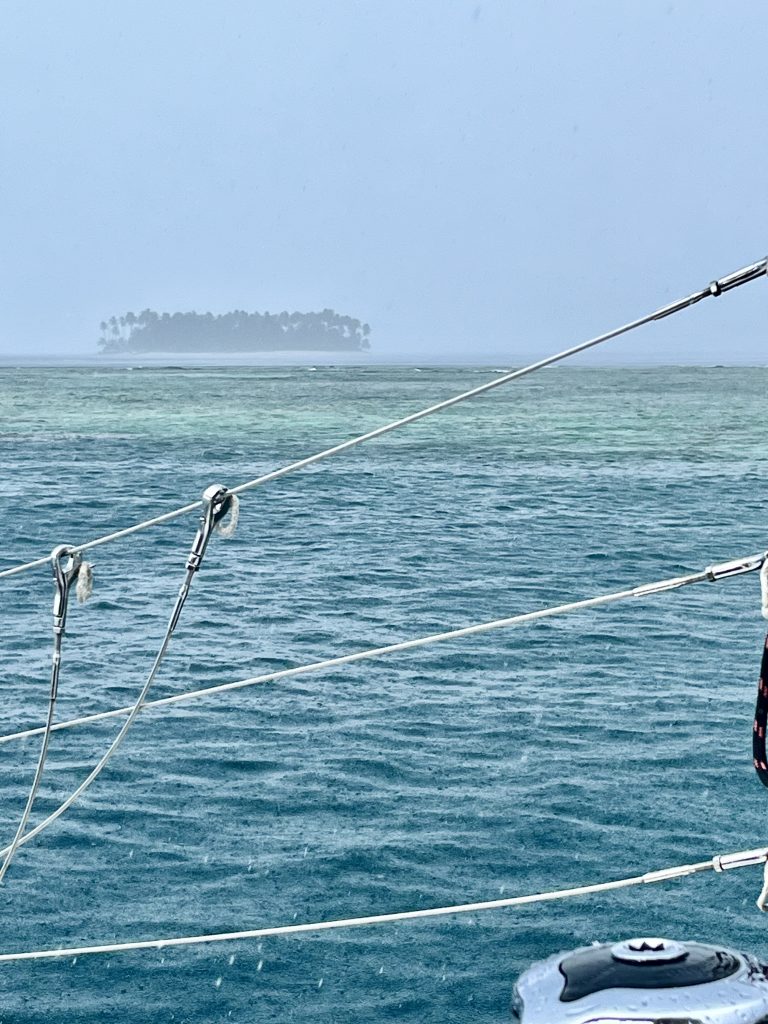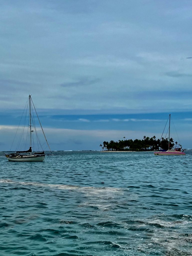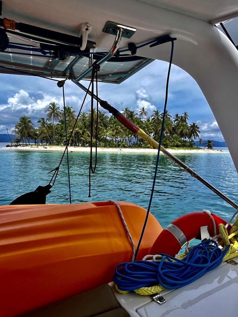 Der Fisch ist not amused über das Hochziehen der Kette ⛓️💥⚓️ und flitzt davon. Wir auch, aber langsam und vorsichtig tasten wir uns durch die Rifflandschaft. Ich stehe vorne am Bug und halte Ausschau, sicherheitshalber. Es geht zu den Coco Bandero Cays. Dafür geht es etwas näher an die Küste heran, aber noch ein Stückchen weiter in den Südosten. Dort werden wir dann am weitesten von unserer Marina entfernt sein. Klaus hat Inseln ins Visir genommen, die unbewohnt und einsam sind, sowie kristallklares Wasser bieten sollen. Let‘s go!