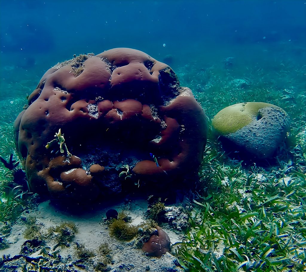 Dann kehre ich im großen Bogen wieder hinter das Riff zurück. Dort liegen Korallenkugeln, wie hineingeschmissen, im Sand.