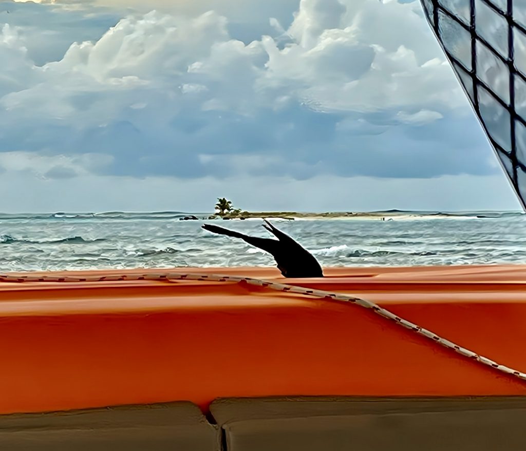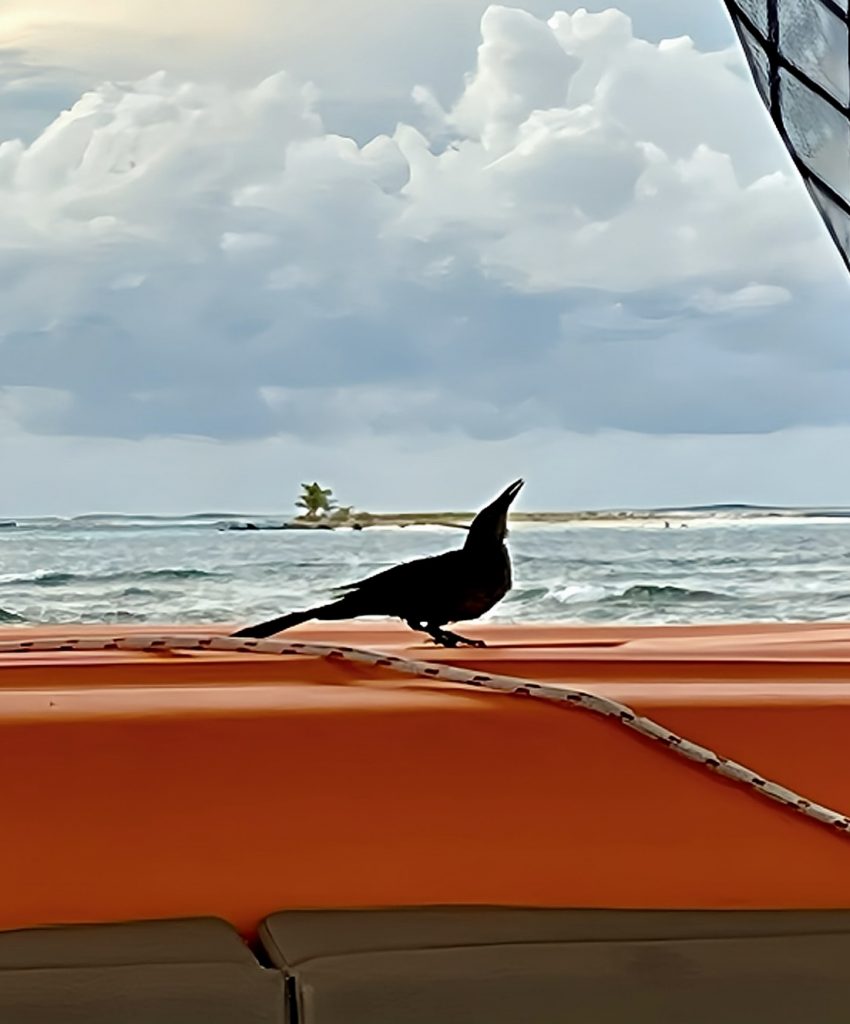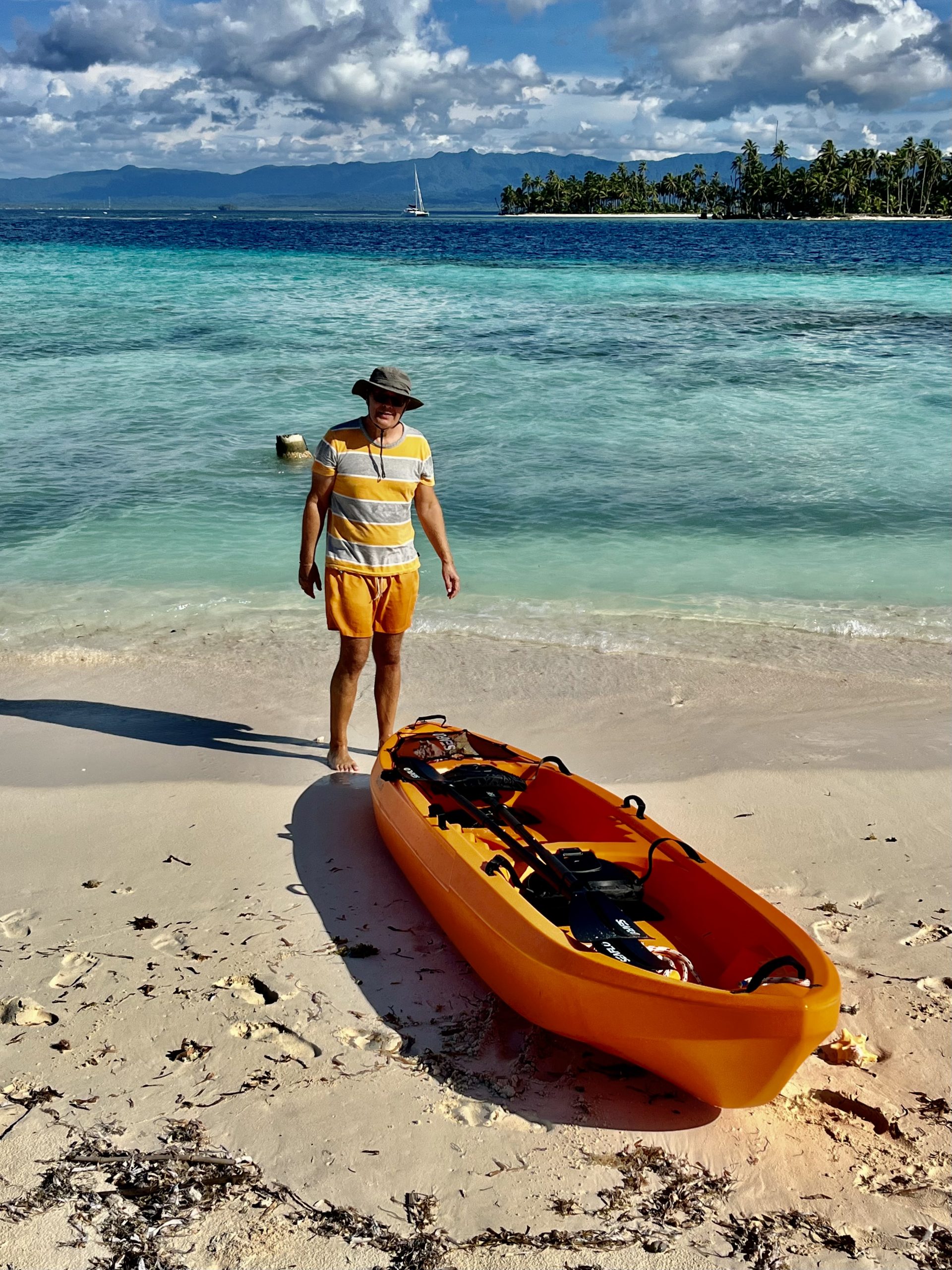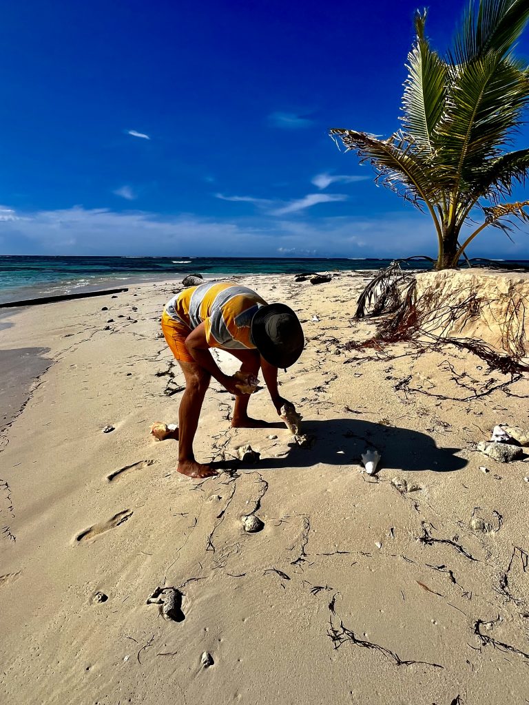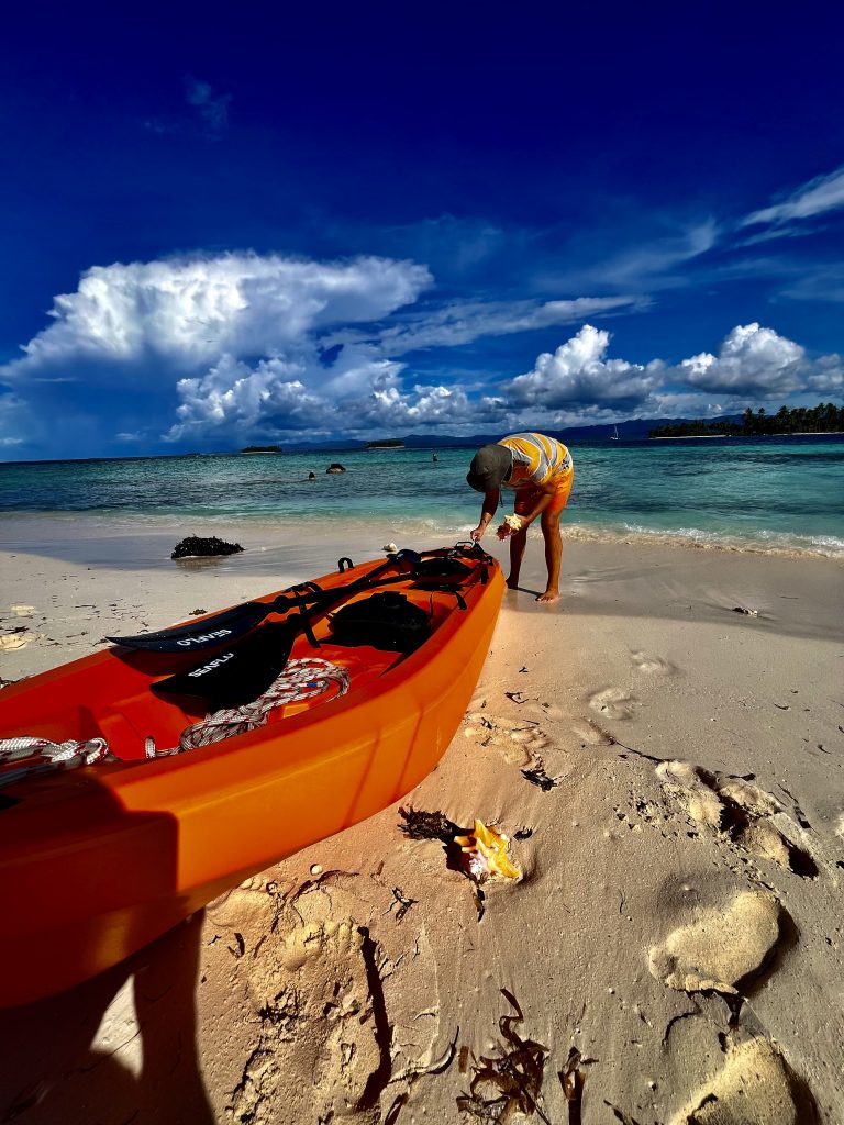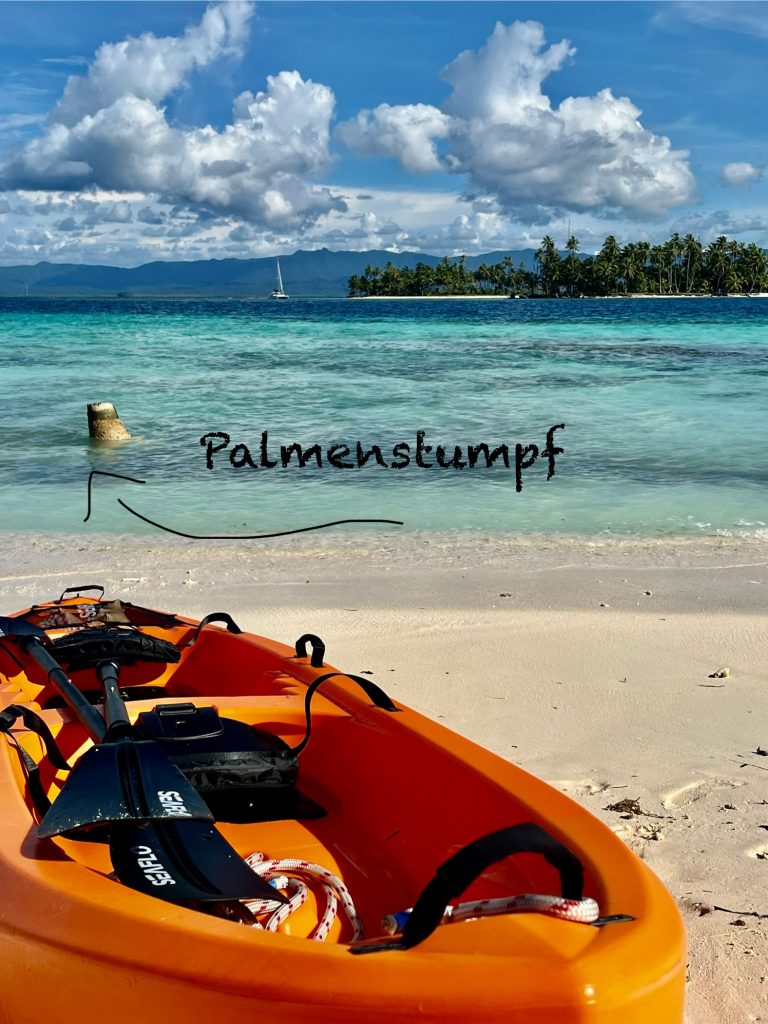 Viele unbeantwortete Fragen, aber die wirklich „echten“ Probleme dieser Welt. Ho ho ho 🫣. Doch erstmal genießen wir eine wunderschöne Frühstückssituation. Rechts, traumhafte Palmen, links glitzerndes Karibisches Meer, über uns piepende Vögel, und vor uns dient unser umgedrehtes Kajak als Vogeltränke.