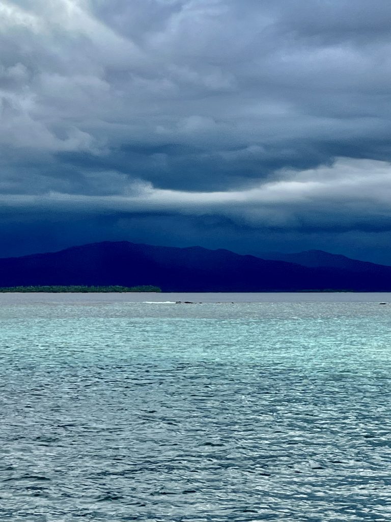 Das ist auch wirklich gut so, denn wenig später zieht erneut ein Gewitter über uns hinweg mit ordentlich Wind und Regen im Gepäck, der Anker hält. Auch schlägt kein Blitz ein. 😮💨 Das ist übrigens ein ewiges Damoklesschwert. Man kann sein Boot vor Blitzeinschlag nicht zuverlässig schützen. Passiert es dann, ist die gesamte Elektrik im Eimer. Das wäre ein großes Problem und ist absolut unerwünscht. Wir gehen mehr und mehr dazu über, die Stecker zu ziehen und die Steckdosen stromlos zu schalten, während es blitzt und knallt.