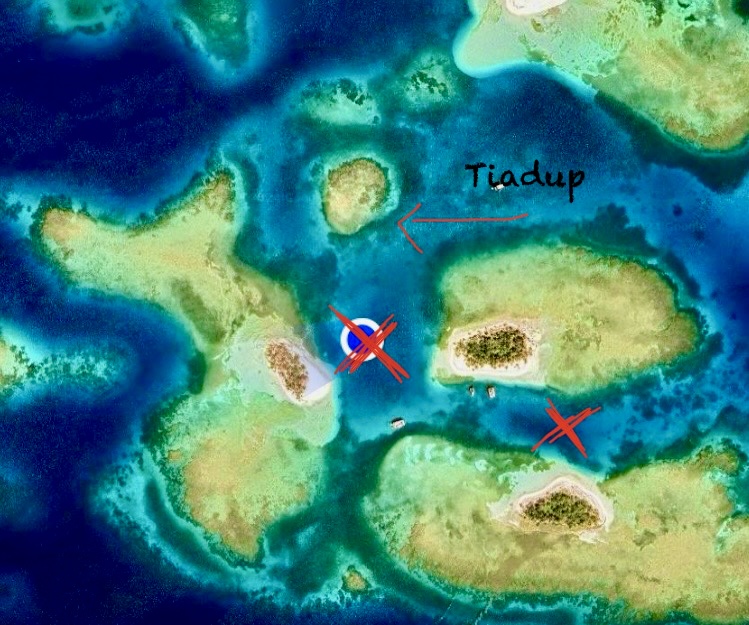 Jetzt geht’s aber zurück! Wieder an Bord, müssen wir noch mal etwas über unsere Sandbank, namens Tiadup, in Erfahrung bringen. Sieht die schon lange so aus?