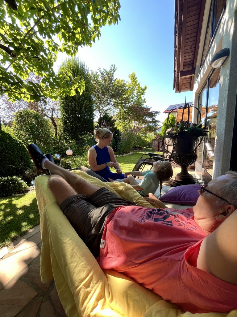 und die Mama ihre langen Haare bei einem noch längeren Friseurtermin aufhübschen lässt. Wir sind fast den ganzen Tag im Garten und genießen den schönen Sommertag.