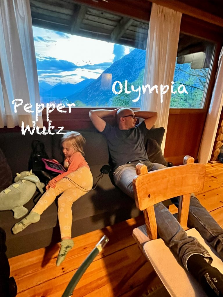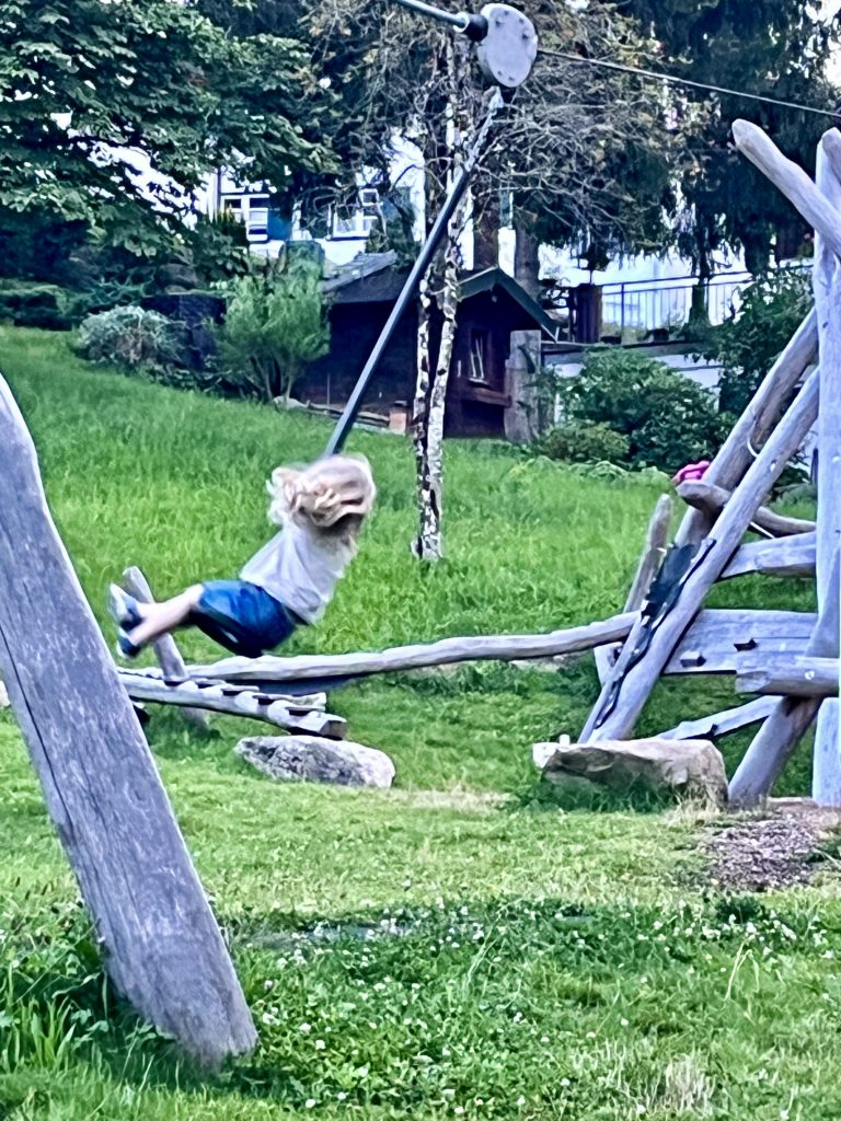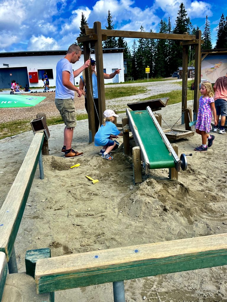 Hier oben ist ein toller Abenteuerspielplatz, mit kleinem Spielbergwerk. Echt toll! Alva genießt es und dann gibt’s nen ordentlichen Hüttenschmaus. Die Jungs sind noch unterwegs… 😅.