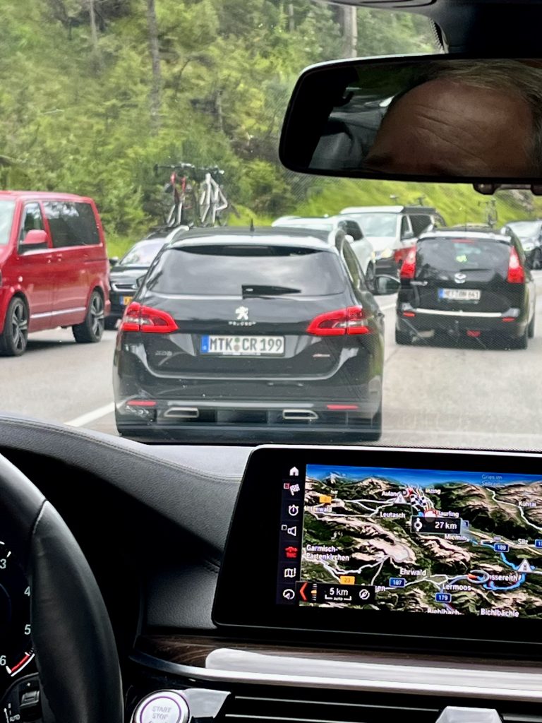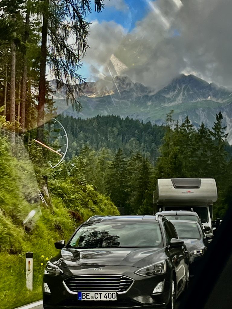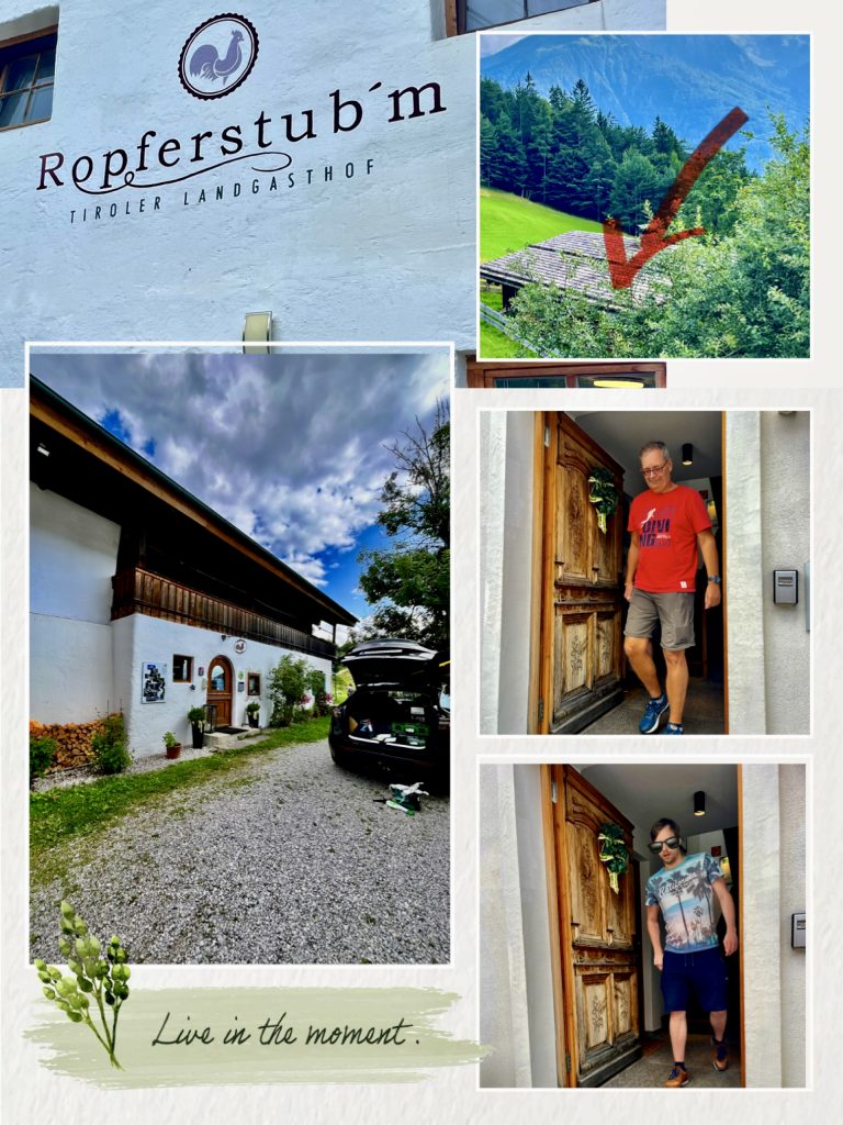 Dann wird ordentlich gespeist, wohlig geschlafen und am nächsten Morgen zum Outlet gefahren. Nun geht’s weiter zum Ropferhof in Tirol, ganz nahe bei Seefeld. Eine Woche Bergidyll steht auf dem Plan, doch der Weg dorthin ist stauig.