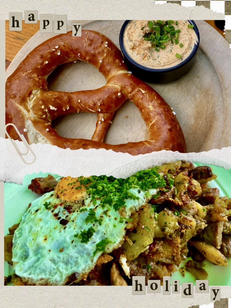 Wir radeln und radeln und radeln den halben Tag. Ich stelle fest, mit dem E-Bike ist das alles kikikäse! Für Klaus nicht, den muss ich dann immer mal wieder ziehen. Wie früher mit dem Mofa… 😄(Aber da zog ich nicht Klaus). Dann kehren wir ein beim Bärenwirt, mit Bärenhunger und bekommen bärig zu Essen.