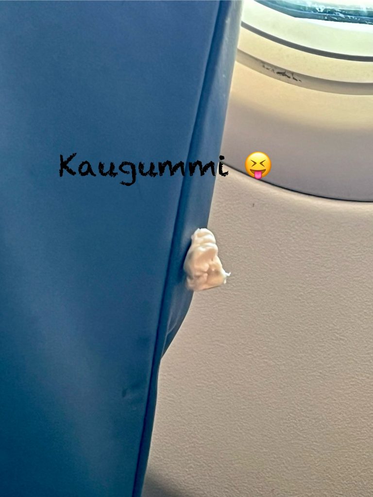 Wofür sind die?? Das sind Verbindungsstück zwischen Leinen und Boot, oder Leinen und Leinen… Er kann zwar nicht viel mit meiner Erklärung anfangen, gibt sich aber zufrieden. Gut! Später wird eingestiegen und wir heben ab nach Madrid. Es läuft rund, kann man so sagen. Bis auf einen etwas ekeligen Reisebegleiter, der beim Abklappen des Tabletts zum Vorschein kommt.
