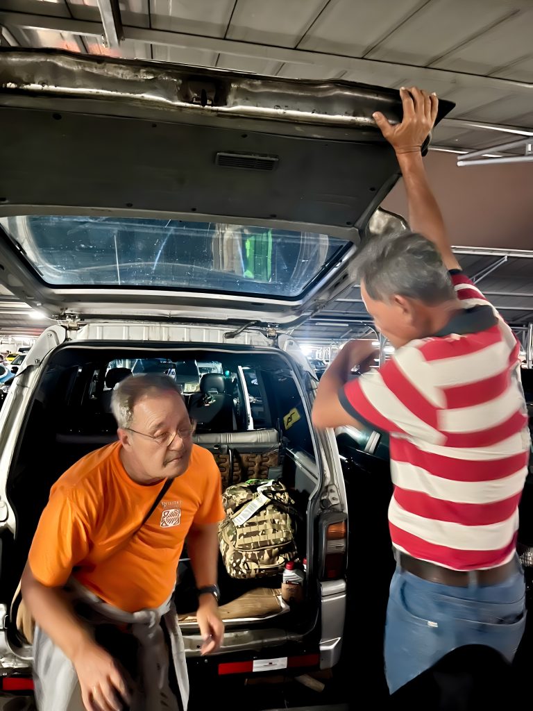 Nun müssen wir bloß noch unseren Taxifahrer finden. Royelin hatte uns schon von der Marina zum Flughafen gebracht und soll uns nun dorthin wieder zurückbringen. Wir sind da, er ist da, aber wir finden uns nicht… Komisch. Wir schreiben hin und her, schicken Standortfotos und ich beobachte einen Mann mit Italy Shirt, der suchend hin und her läuft und in sein Handy guckt. Wir schauen uns auch an, aber er läuft weiter. Irgendwann wird uns allen klar, er ist unser Mann, wir die Abzuholenden. Mensch, da haben wir uns nach 5 1/2 Wochen nicht mehr wiedererkannt, ha ha ha. Sowas aber auch. Aber seine Schrottkiste erkennen wir dann schon.
