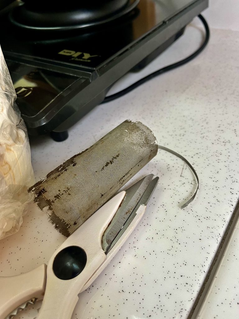 Wir spülen sie durch, erneuern das Filtersieb