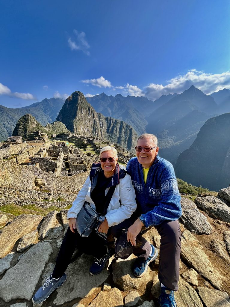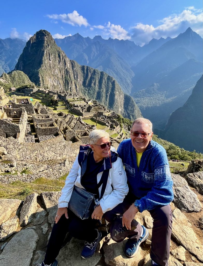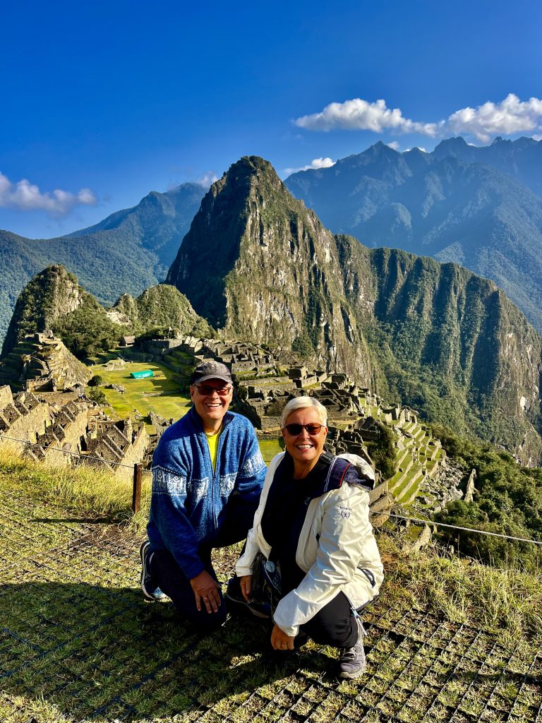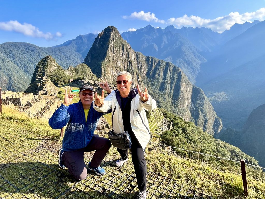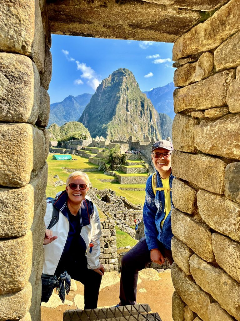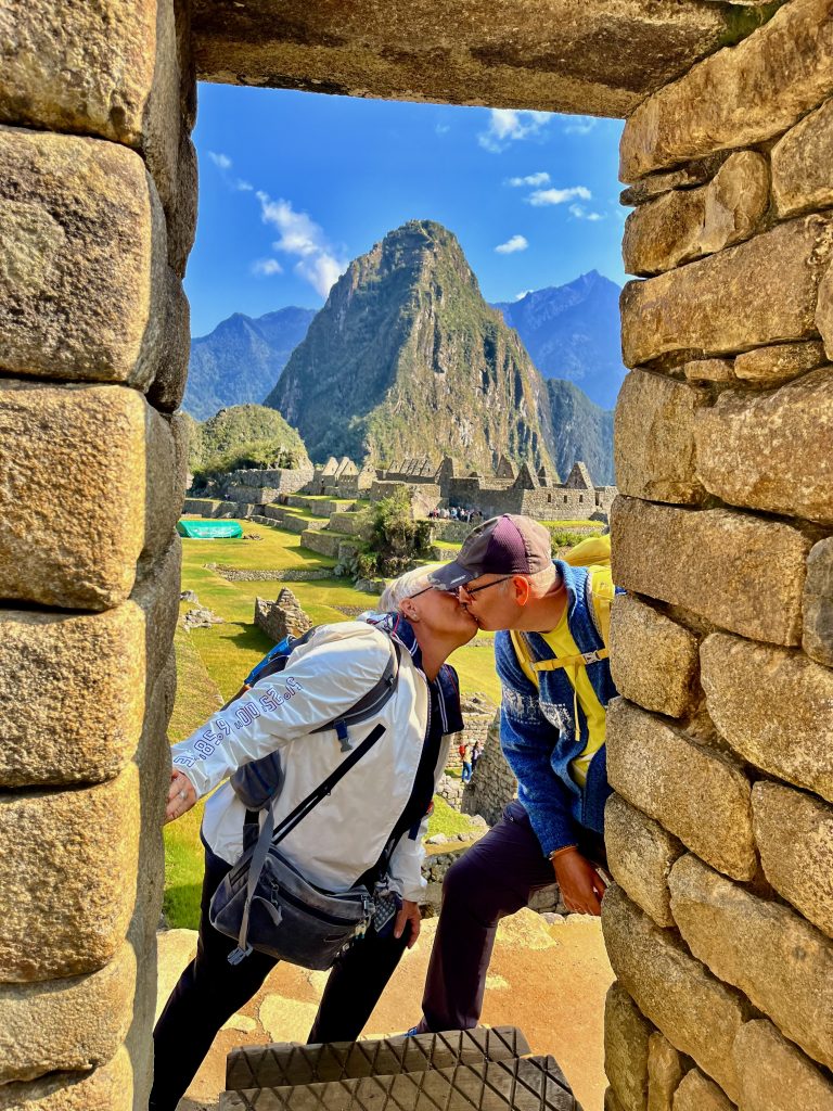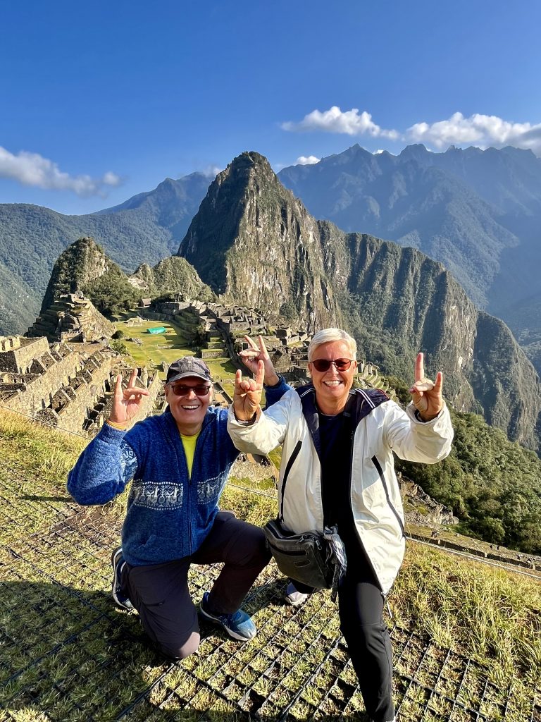 Klausito und Andreita betreten um 6:44 Uhr die Aussichtsplattform, um genau um 6:45 Uhr den ersten Blick auf die heilige Stadt Machu Picchu werfen zu können. DAS ist der viel beschriebene “Postkartenblick” den die Welt kennt, nun also auch diese beiden. Applaus, Applaus 👏👏 und großen Dank an Joel!