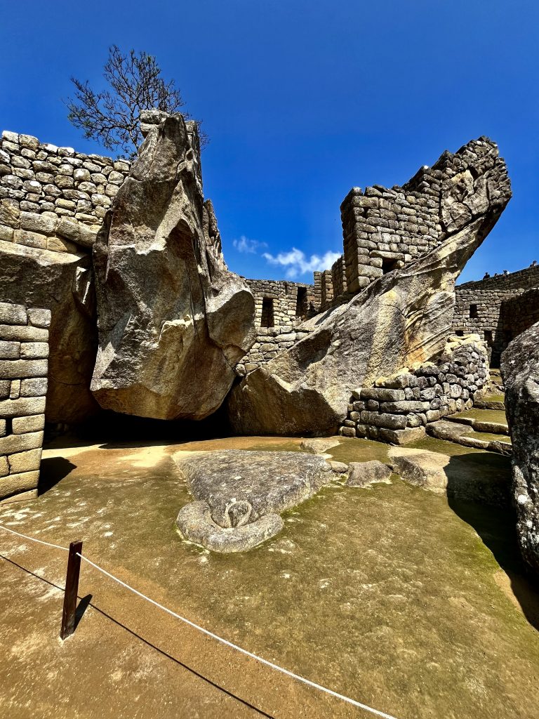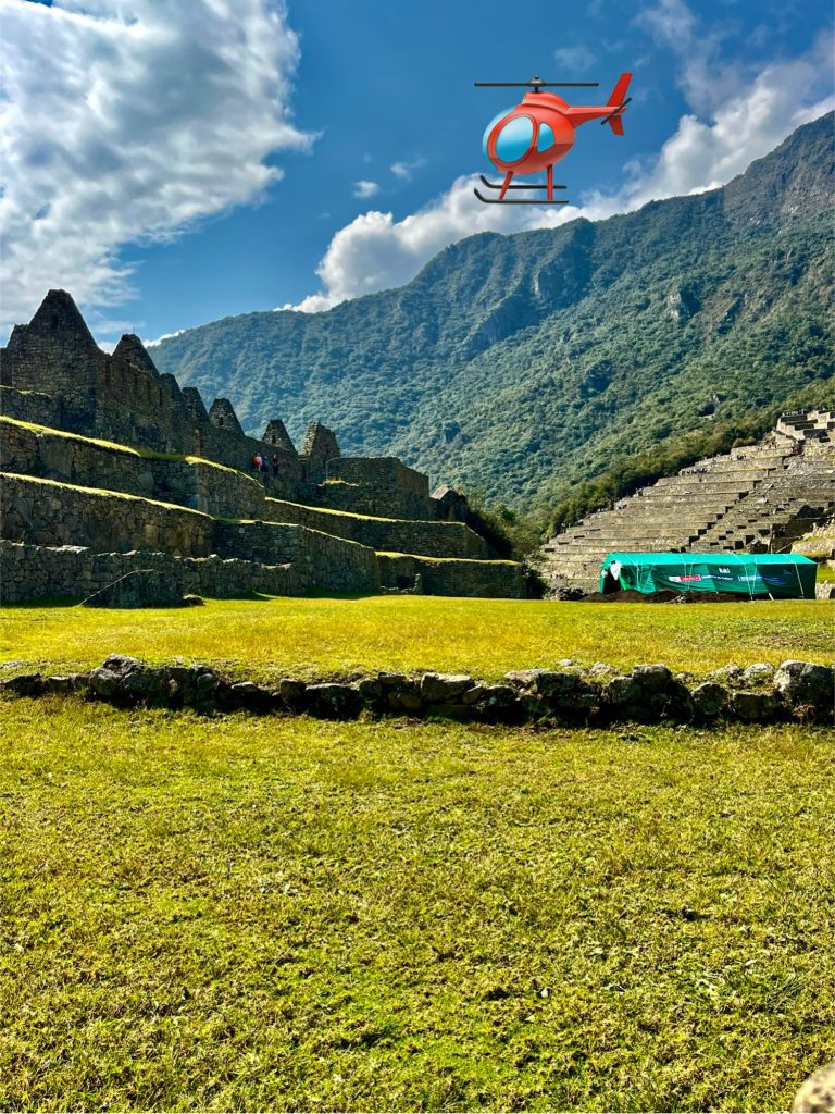 Was wird da auf dem Hauptplatz mit grüner Plane eigentlich abgedeckt? Joo, das ist ne echte Kuriosität! Da lag ein großer Monolith, der jetzt auch wieder da liegt aber nicht mehr so wie er mal war. In den späten 80er Jahren besuchten das alte und das neue spanische Königspaar Peru und natürlich auch Machu Picchu. Juan Carlos und Sophia, schon etwas in die Jahre gekommen, wurden mit dem Helikopter hinaufgeflogen.