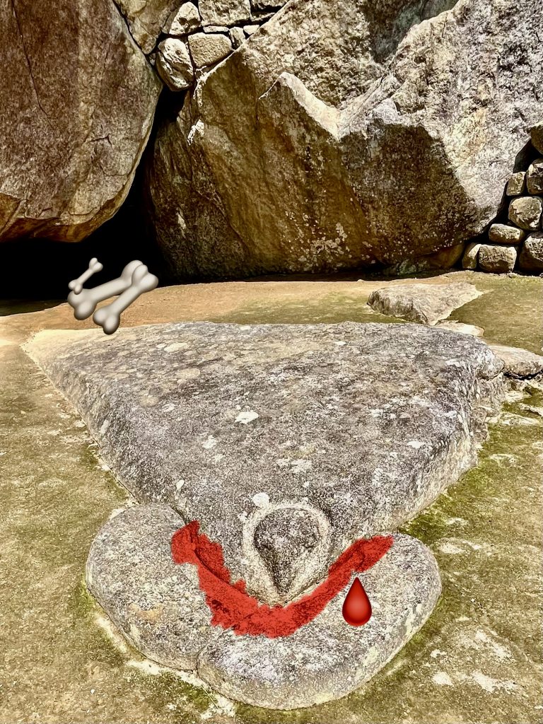 Einige Jahre später fand ein politisches Treffen in Peru statt und wichtige Politiker der damaligen Zeit wurden ebenfalls hoch zur Heiligen Stadt geflogen. Also Monolith wieder weg und nach dem prestigeträchtigen Termin, Monolith wieder hin. Dabei zerbrach er in mehrere Stücke. Upsi … 🫣. Man entschloss sich, die Bruchstücke auf dem Platz zu vergraben, so war das Malheure aus den Augen und aus dem Sinn. Heute hat man diese Schande wieder ausgebuddelt und ist dabei den Stein zu restaurieren. Deshalb die grüne Plane auf dem Heiligen Hauptplatz. Aha!