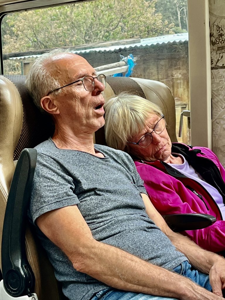 Um 5:00 Uhr klingelt der Handywecker, gleich geht es los. Treffpunkt ist 6:00 Uhr in der Lobby. Alle sind pünktlich, auch Ronaldo und unser Guide Joel sowieso. Hallo Joel, nice to meet you❣️Er ist jünger als wir und Ronaldo und macht einen fitten Eindruck. Eigentlich ist alles klar, wir brauchen nur noch unsere Busfahrkarten und Eintrittskarten, dann können wir los. Aber irgendwie windet sich Ronaldo, will die Karten nicht wirklich rausrücken und bequatscht unseren Guide. Was will er nur? Ich bin genervt und bestätige Joel, dass wir los können, egal was Ronaldo so labert. Dann stelle ich mich vor Ronaldo hin und will unsere Karten. Mensch nochmal! Ich haben nun keine Geduld mehr! 😤 Heißt es doch immer, man solle möglichst früh an den Bushaltestellen sein, der Andrang sei immer immens. Endlich, wir können los! Irgendwie fühle ich mich wie befreit, als wir nun zügig zu dritt zum Bus laufen. Joel gibt kurze Hinweise, die Busfahrtickets und den Reisepass bereitzuhalten und führt uns zügig an allen Wartenden vorbei zum Bus. Prima. WIR sitzen schon mal drin. Die Anspannung fällt ab. 😮💨 Der Bus ist voll, der Bus fährt ab. Jetzt geht es ne gute halbe Stunde in Serpentinen den Berg hinauf. Zeit, die wir nutzen um Joel unser Problem mit Weg 2 und 3 zu erklären. Er hat’s verstanden, hält sich aber noch bedeckt.
