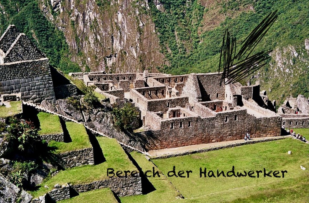 und andere hatten neben religiösen, vorrangig astronomische Zwecke. Überall gibt es Fenster, Vorsprünge, “Hubbel” wie in Ollantaytambo, Einkerbungen und Vertiefungen für den Einfall der Sonne sowie Gebäude ohne Abdeckungen mit besonders ausgerichteten Öffnungen, um Sternbilder zu beobachten und zu deuten. Eine ganz besondere Aufmerksamkeit wurde Sonne, Mond und Sternen zu Teil, um einen perfekten Kalender für alle landwirtschaftlichen Aktivitäten zu bekommen. Es war überlebenswichtig zu wissen, was, wann und wo angebaut und geerntet werden konnte. Fehler wären fatal gewesen. So bestand der Hauptteil der Bevölkerung aus Bauern. Sie bewirtschafteten die vielen Terrassenfelder und lebten in eigenen Steinhäusern außerhalb der Stadt.