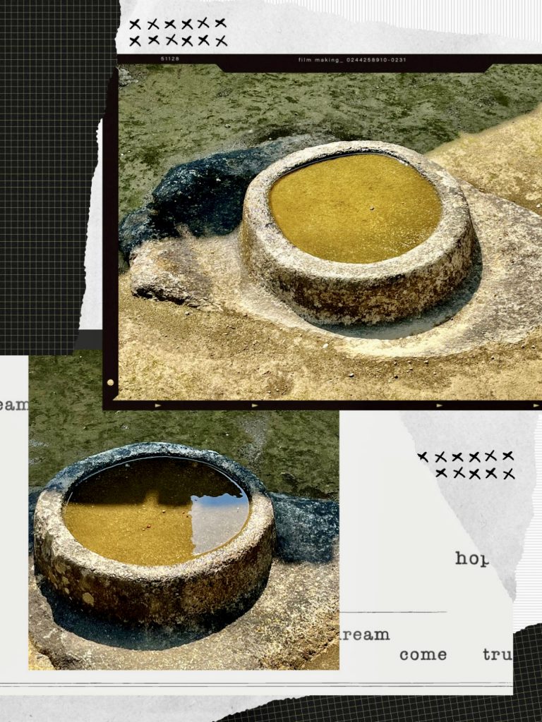 Hier sind wir im Saal der astronomischen Spiegel. Diese beiden durch Wasser geschaffenen Spiegelflächen dienten der Feststellung der Wintersonnenwende und der Tagundnachtgleiche.