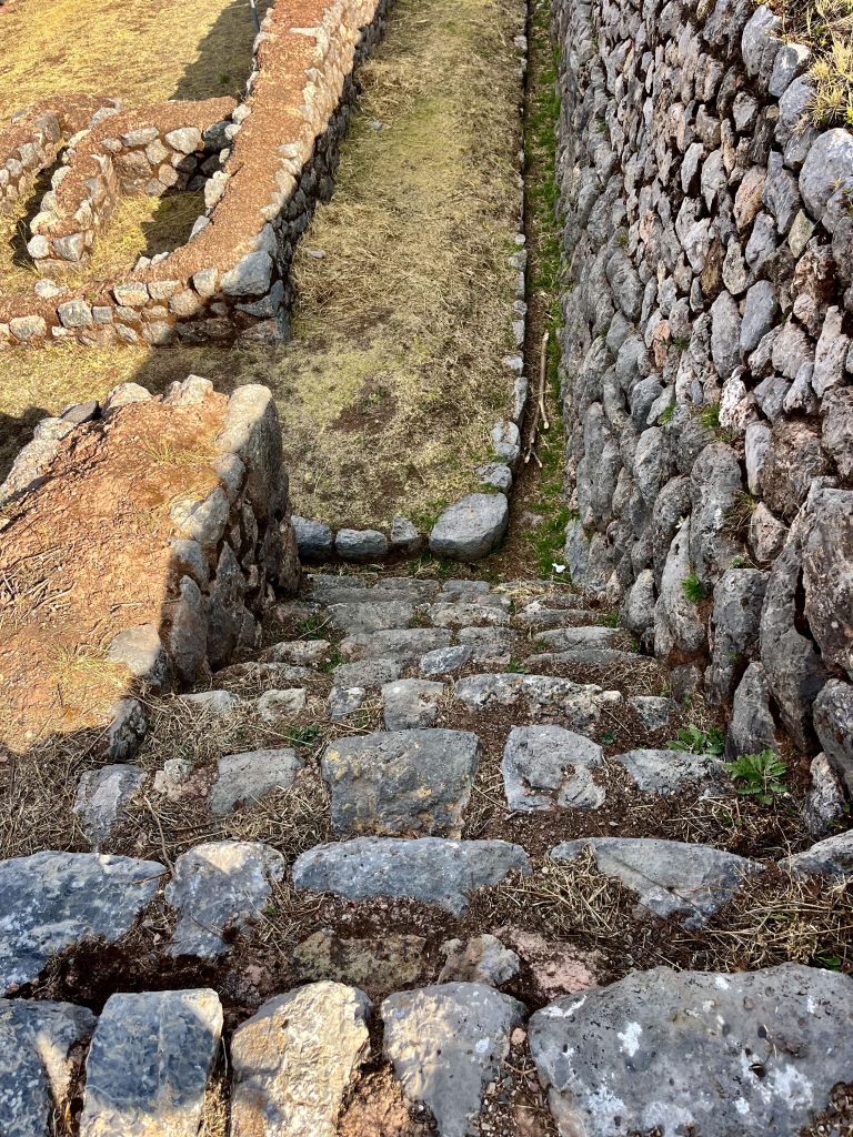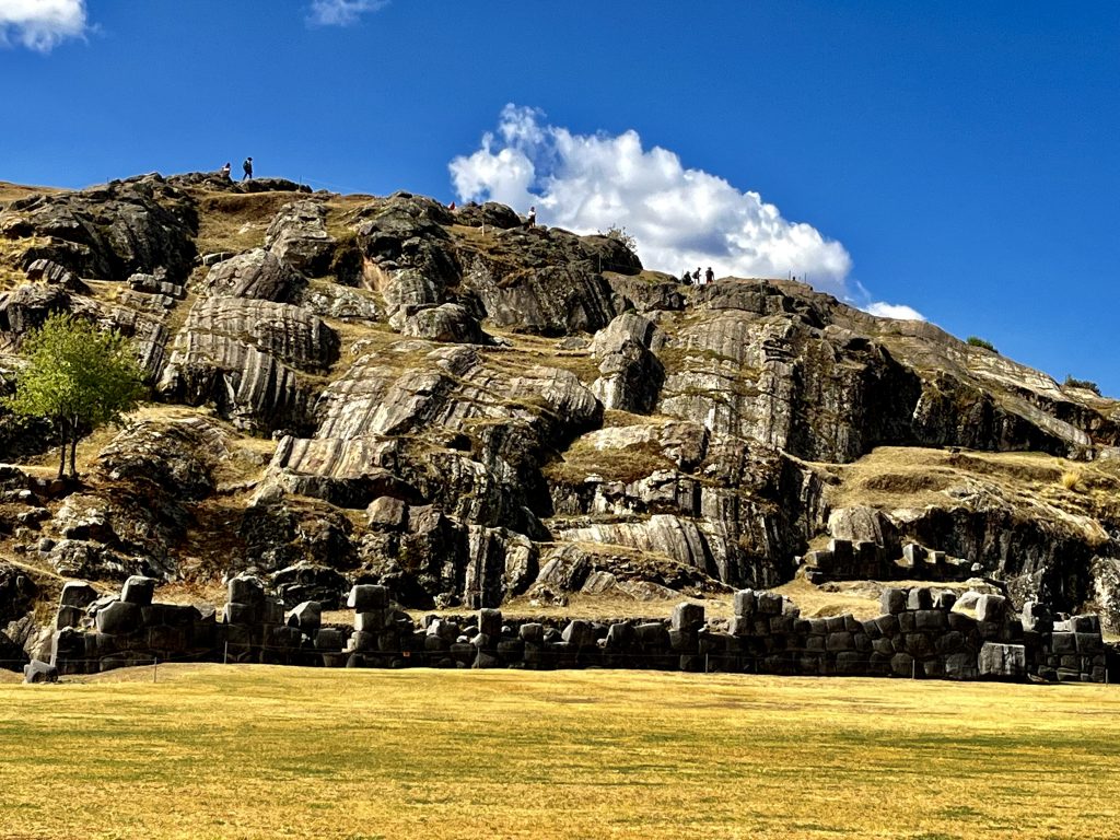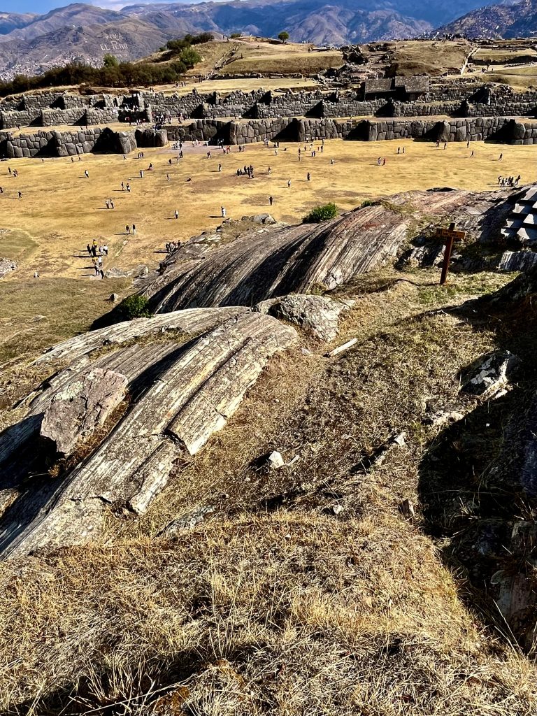 Dass dieses Mauerstück Teil einer dreifachen Zickzackverteidigungsmauer ist, können wir erst von weiter oben erkennen. Wieder staunen wir über die massigen Steinkolosse, die da so übereinander gehievt wurden! Auch ein früher spanischer Chronist war schier von den Socken. Er konnte gar nicht glauben, dass das das Werk von Menschenhand sein sollte. 🤔 Aber so ist es nun mal, es ist Tatsache.
