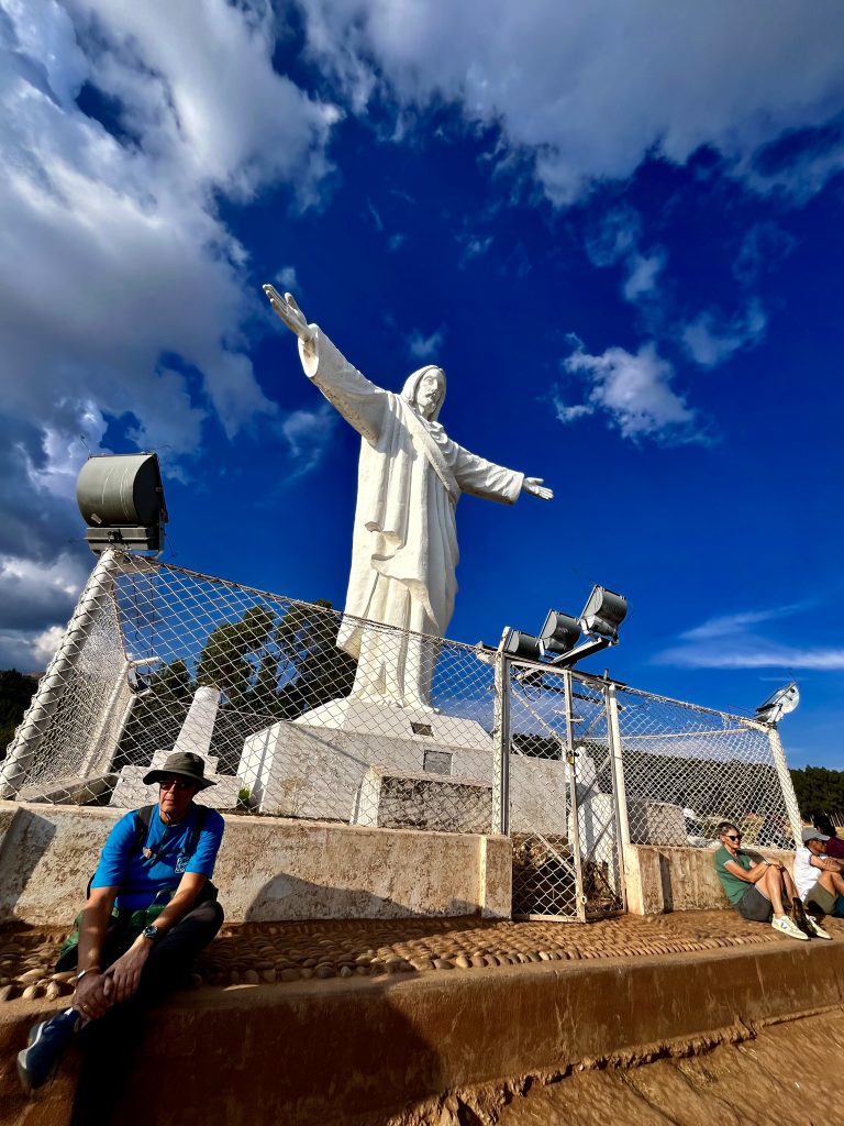 Tschau Herr Jesus, wir laufen jetzt nicht mehr bis unten, sondern schnappen uns doch tatsächlich ein echtes Taxi, beziehungsweise schnappt sich der Taxifahrer uns. Wir fahren gemütlich bis runter ins Stadtzentrum und laufen zurück zu unserem Hotel.