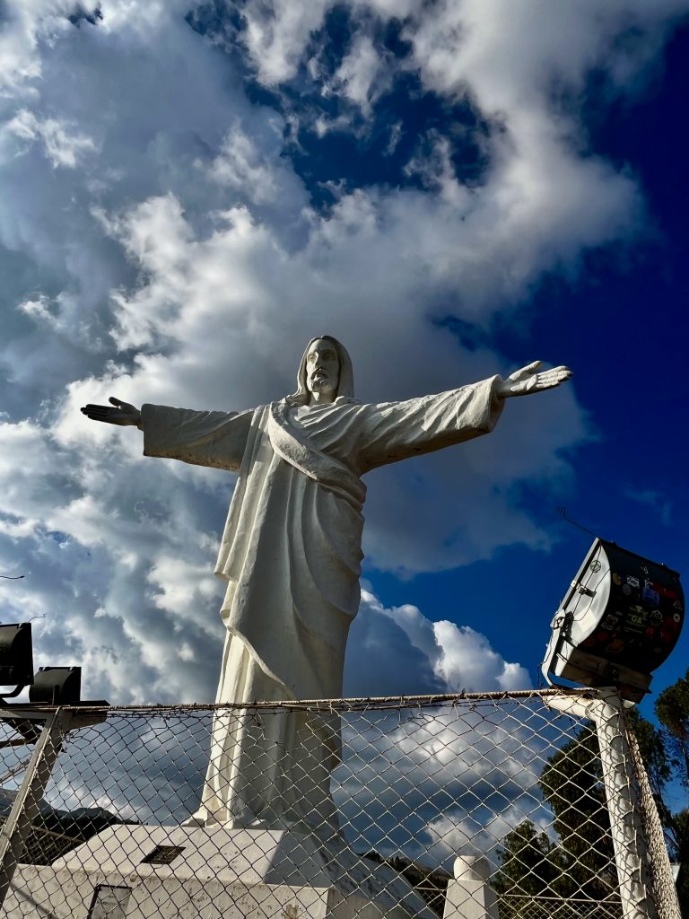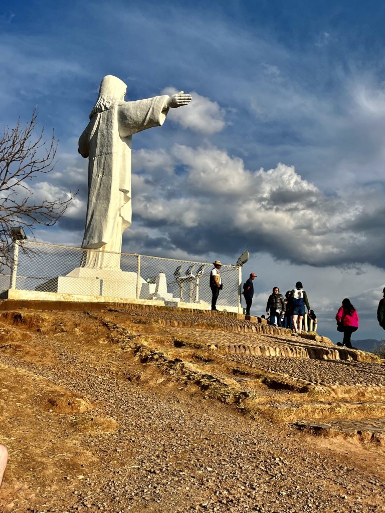 Wir verlassen jetzt das Inka-Gelände von Sacsayhuamán, steigen noch etwas höher, unter Stöhnen und Geschnauf und besuchen Jesus. Dort soll es den besten Blick über Cusco geben.