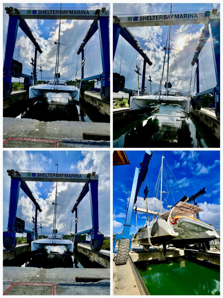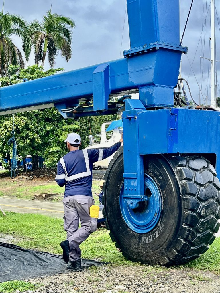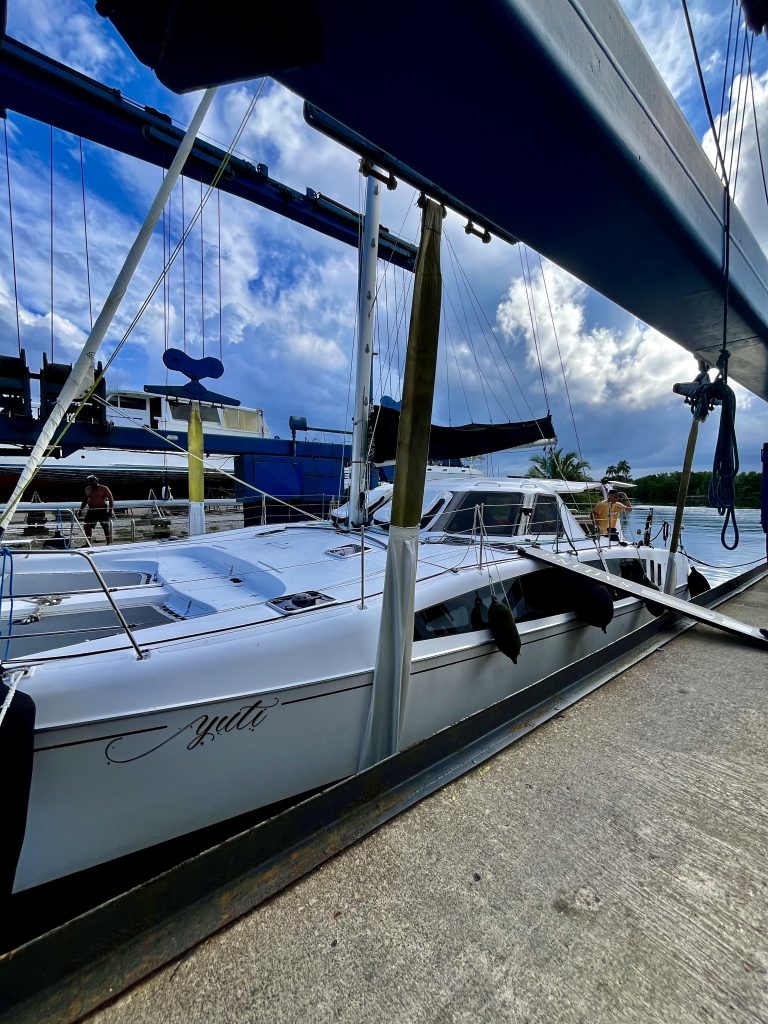 Uwe und Luises‘ Boot hat Coppercoat. Das ist keine Krankheit, sondern ein Unterwasseranstrich, der sehr hart und lange haltbar ist, aber auch regelmäßig im Wasser gereinigt werden muss. Hier in Panama geht das wegen der Krokodile nur bedingt, und so haben sich tausende Seepocken festgesetzt. Prost Mahlzeit, das wird ne Arbeit, die alle von Hand abzukratzen. Also die Häuschen sind schon weg, aber der Fußabdruck, oder vielmehr die Bodenplatte klebt noch dran. Die Seepocken verfügen über den stärksten Kleber der Welt. Und die Bodenplatte enthält Hormone, so dass neue Pocken schneller wieder „anbeißen“. Uwe und Luise wollen diese Sklavenarbeit selber verrichten und legen auch gleich mal los. Sie haben nur 3 bis 4 Tage am Hardstand eingeplant. Wir gucken uns das eine Weile an und denken, nee, das ist zu zweit definitiv nicht zu schaffen! Wir lassen uns jeder einen Beitel geben und legen mit Hand an. So kratzen und schaben wir zu viert, dann zu dritt, Luises Armgelenk hat sich wohl entzündet, an drei Tagen, was das Zeug hält. Jan kommt auch noch mit dazu, seine Biggi weilt in Berlin bei ihrem kranken Bruder. Irgendwann ist es vollbracht, aber während dessen tun sich immer mehr Baustellen auf. Besser man guckt erst gar nicht… 🫣. Ich habe seitdem „Springfinger“. Meine rechten Ring- und Mittelfinger gehen nicht mehr stufenlos hoch, sie springen praktisch hoch. Ähhhh 🥴. Luise und Uwe organisieren sich nun doch eine Hilfe dazu und schuften viele Tage. Aus den geplanten 3 bis 4 Tagen, werden schnell fast 2 Wochen. Auch Regen haut ihnen immer wieder einen Strich durch die Rechnung. 🙄 Zwei Tage bevor wir rausgehoben werden, kommen sie erst wieder rein ins Wasser. Und Ihnen langt‘s, aber so was von! Zur selben Zeit bekommen wir die offizielle Erlaubnis, durch den Kanal zu dürfen. Uiuiuiui… 😝. Unsere Transitnummer lautet: 6026404, und der Termin wird auf den 14. November festgelegt. Diese Infos bekommen wir von Roger, unserem lizenzierten Agenten. Oh, oh, oh, die Spannung steigt erheblich. Und morgen habe ich Geburtstag und übermorgen hole ich der Königin ihr Kind. Nee, übermorgen wird Yuti aus dem Wasser geholt. Auch davor sind wir etwas adrenalinhaltig. 😵💫 Bis zuletzt sind wir uns nicht wirklich sicher, ob wir nun alle Arbeiten selber machen, oder die doch lieber, wenigstens zum Teil, vergeben. Estefania ist unsere Ansprechperson auf der Werft, und wir beschließen gemeinsam, wir schauen uns die Hulls erstmal an. Okay 👍. Und was geht an meinem Geburtstag? Wir müssen wieder einmal Pakete bei PTY abholen. Gestern, wo wir einen X-ten Einkauf im Baumarkt gemacht haben, sind wir anschließend in das tolle Sushi-Restaurant gegangen, wo wir schon einmal den Rückbuss verpasst hatten. An diesem Tag stellten wir uns von vornherein darauf ein und planten mit einem Uber zurückzufahren. Soweit so gut, Sushi mit Kobe Rind schmeckte fantastisch, aber das Uber-Taxi wollte und wollte nicht kommen. Wir hatten Feierabendverkehr und warteten über eine halbe Stunde. Zwischenzeitlich dachte ich, ich sei in der Vorhölle gelandet. 👹 Aus dem eiskalten Restaurant kommend, in der Hitze stehend, schweißgebadet, bretterten amerikanische Lkw‘s und Busse an uns vorbei. Sie pusteten ihre schwarzen Abgase qualmend heraus und machten beim Gasgeben unglaublichen Lärm. Ich glaube, sie hatten noch Spaß dabei. Endlich kam dann auch unser Uber, und es ging zurück zu unserer ruhigen Marina. 😅 Vom Essen her betrachtet war das Sushi eher mein Geburtstagsessen, denn heute bei PTY gibt’s nur einen Kentucky Fried Chicken in der Nähe. Aber wir wollen mal ein paar Hühnerbeine probieren, ob ich die für das geforderte Essen bei der Kanaldurchfahrt verwenden könnte. Wir bestellen ordentlich… und es schmeckt fürchterlich. 🤮 In der Tat muss sich Klaus wirklich übergeben, denn er bekommt einen Allergieanfall vom Hühnerfleisch. Wieder draußen, schmeißen wir alles in die Tonne. Heute Abend ist wieder Pizza-Mittwoch und ich werde alle, Luise, Uwe, Jan und Biggi, sie ist gerade wieder zurückgekommen, einladen. Dass es da schmeckt, weiß ich ja. 😅 Also Prosit neues Lebensjahr. 🍻