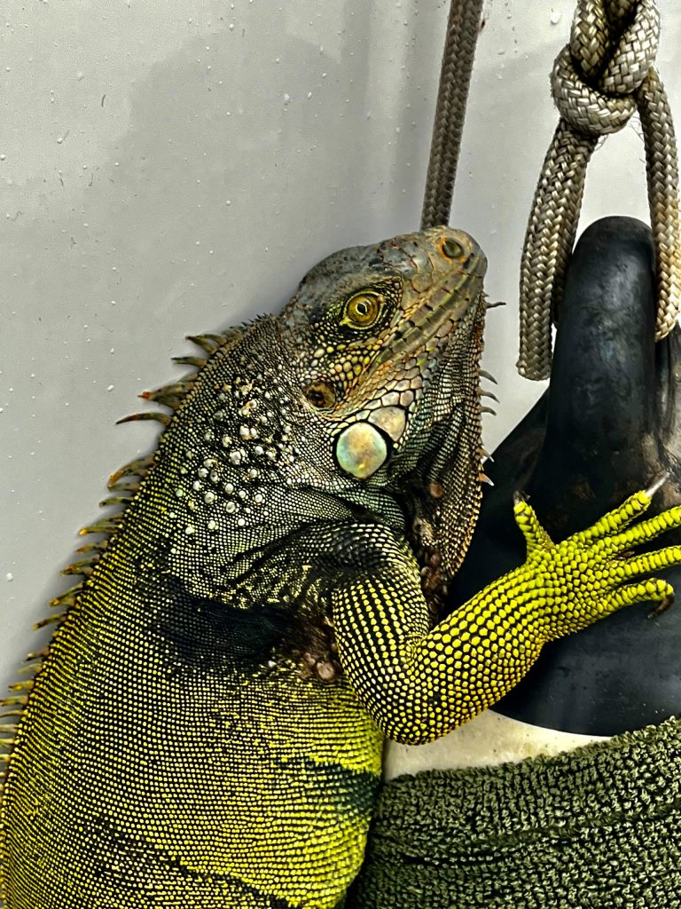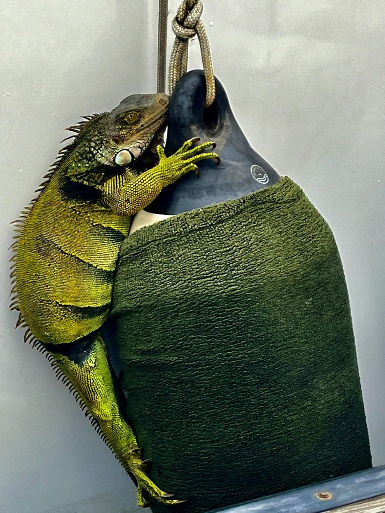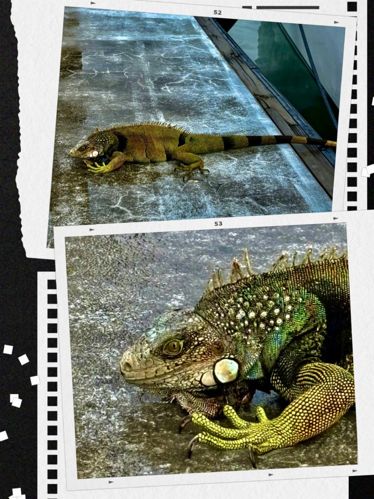 Am nächsten Morgen reiben wir uns erstmal den Schlaf aus den Augen. Die Nacht war wieder laut und anstrengend. Die Party-Meile ließ grüßen. Vor lauter Schreck hat sich ein Leguan an einem unserer Fender festgekrallt.