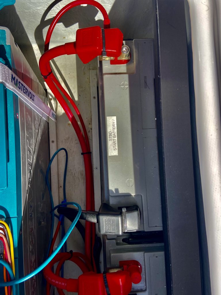funktioniert leider nicht, immer beim Einschalten fliegt sofort die Sicherung raus. Nun gut, dann müssen wir halt die Motoren anmachen, um genügend Strom zu haben. Dafür brauchen wir dann ja wieder die Starterbatterien, Witz komm raus… 😂.