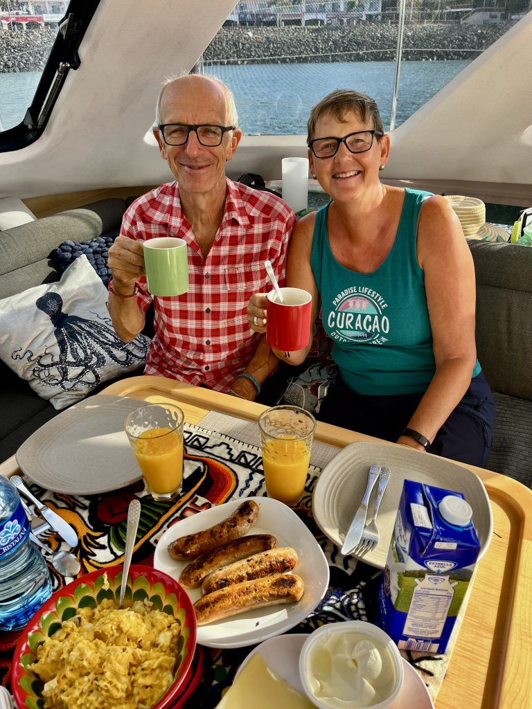 Schön, so zu viert den Tag zu beginnen. Leider wird das nun auch der Schlusspunkt unserer gemeinsamen Zeit sein. Uwe und Luise werden jetzt noch nach Panama City fahren, ein paar Einkäufe tätigen und dann zurück zur Shelter Bay, zu ihrer Luwina, fahren. Anfang Dezember geht es für sie nach Hause, um im Januar zurückzukehren und den Weg zurück zu den Bahamas und später dann ins Mittelmeer zu nehmen. Also führen unsere Wege in völlig entgegengesetzte Richtungen, und ein Wiedersehen ist wohl eher unwahrscheinlich. Schade! 🫤