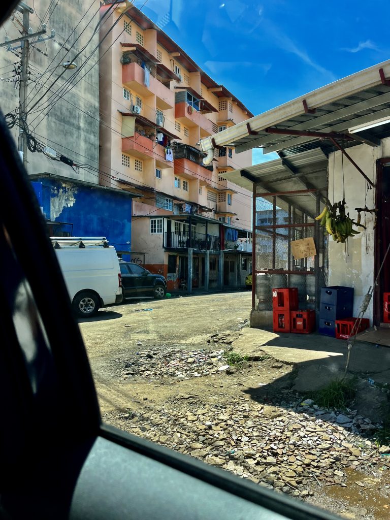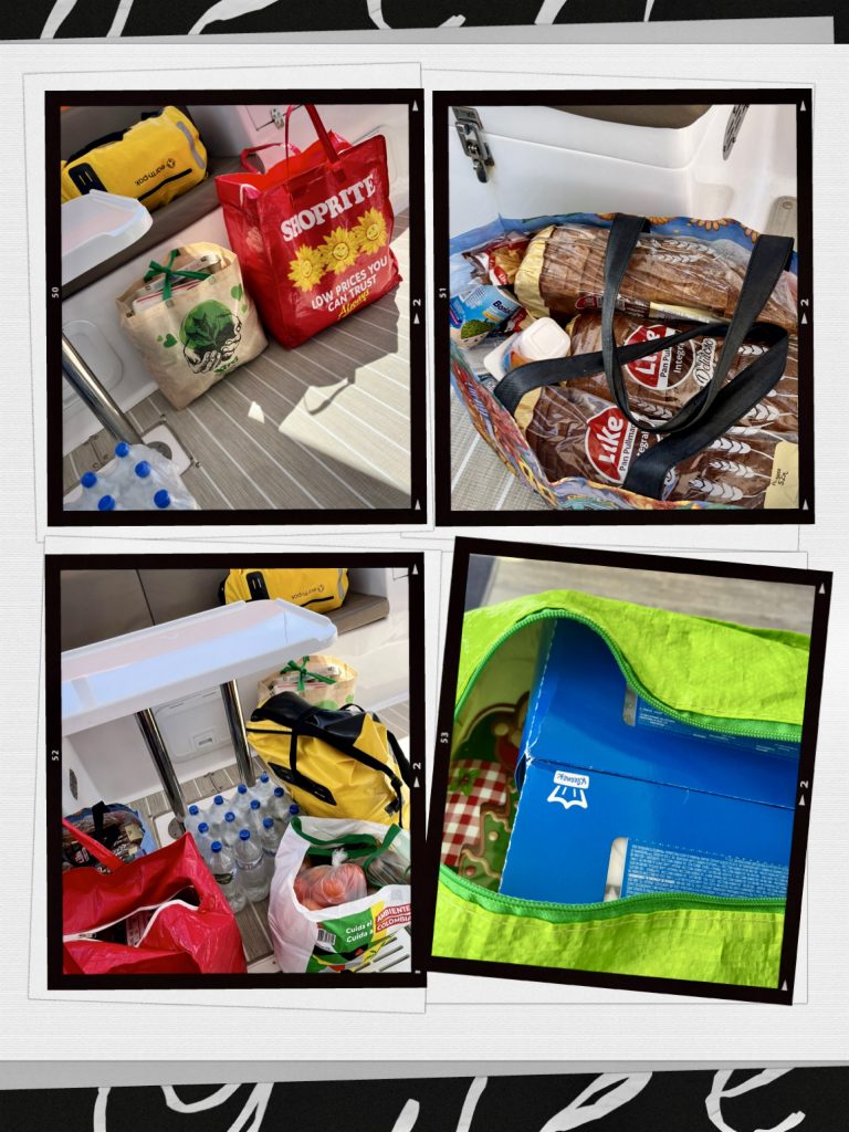 Der Markt hat wenig Importwaren, aber er ist ganz ordentlich sortiert. Mit zwei Wägen schieben wir durch die Gänge. Voll bis obenhin stehen wir an der Kasse. Reis, Nudeln, Kartoffeln, Zwiebeln, Tomaten Kohlköpfe, Möhren, ein paar Tomaten und Gurken, Äpfel und Birnen, Dosengemüse, Obst in Dosen, Nudelsaucen im Glas, Thunfischdosen, haltbare Milch, Haferflocken, Wurst und Käse, Butter, Nuss-Nougat-Creme, nein, Nutella haben sie nicht, Toastbrote, Müsliriegel, Honig, Salz und Pfeffer, Yoghurt in Flaschen und Orangensaft, Olivenöl, Sojasauce und Cocosmilch, Handtuchrollen und Toipapier, Spülmittel, Wasser und ein paar Coca Cola Flaschen. Einige andere Sachen habe ich schon auf dem Boot. Schwerst bepackt stehen wir am Ausgang und warten auf unseren, uns abholenden Uberfahrer. Der kommt, und gerade so passt alles ins Auto. Wir sitzen, da meint unser Fahrer, ob wir nicht wüssten, dass das hier rotes Gebiet sei, also eine No-Go-Area! What??? 🫢 Nee, keine Ahnung. Google hat uns nicht gewarnt. Aber so eine Funktion gibt es bei Google doch gar nicht, oder? Er meint, wenn er nicht als Auftraggeber ‚Klaus Müller‘ gelesen hätte, wäre er nicht gekommen. Upsi❗️ Gut dass wir so einen echt typisch-deutschen Namen haben. 😉 Aber mal ehrlich, da haben wir uns schon in ärmlicheren Gegenden bewegt, aber heute und hier vielleicht auch Glück gehabt. 🍀 Zurück am Boot, heißt es erstmal alles verstauen, eine Mammutaufgabe!!!