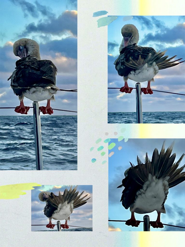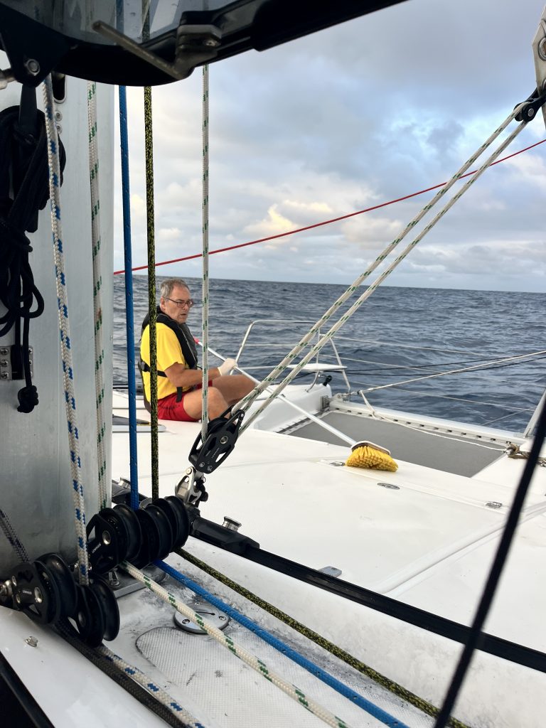 Der erste wirklich schöne Tag auf dem âStillen Ozeanâ ist heute! Die Sonne scheint vom ausnahmsweise blauen Himmel herunter, das Wasser glitzert, Yuti segelt ruhig, mit 5 Knoten durchs Wasser. Keine Vögel fliegen uns an, keine Tintis fliegen an Bord, noch nicht, und keine neuen Katastrophen brechen ĂŒber uns herein. Die Wanten sind unverĂ€ndert.