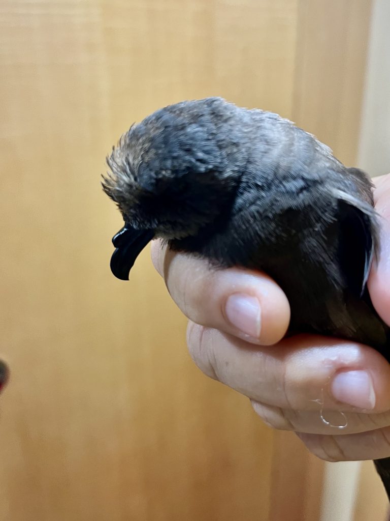 Ein Sturmvögelchen hat sich im Innern des Bootes verirrt und sitzt verängstigt unter der Treppe zur Galley, der Bordküche. Ich nehme ihn vorsichtig in die Hand