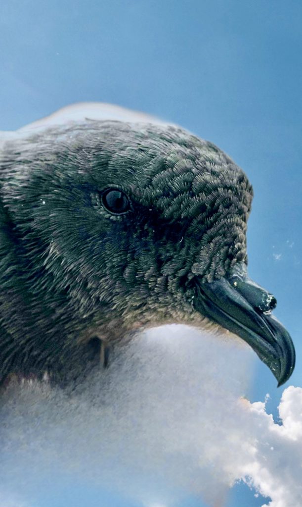 Dieser Kleene gehört zur Ordnung der Röhrennasen. Diese zwei auf der Nase sitzenden Röhren, haben nur ausgesprochen hochseetaugliche Vögel! Sie sind dazu da, das Salz, dass sie bei ihrer Nahrungsaufnahme mit aufnehmen, wieder los zu werden. Sie rotzen es sozusagen durch diese Röhren wieder raus. Und dass sich das Vöglein auf den Bauch plumpsen ließ, liegt an seinen schwach ausgebildeten Beinchen. Und ich dachte schon es sei krank…