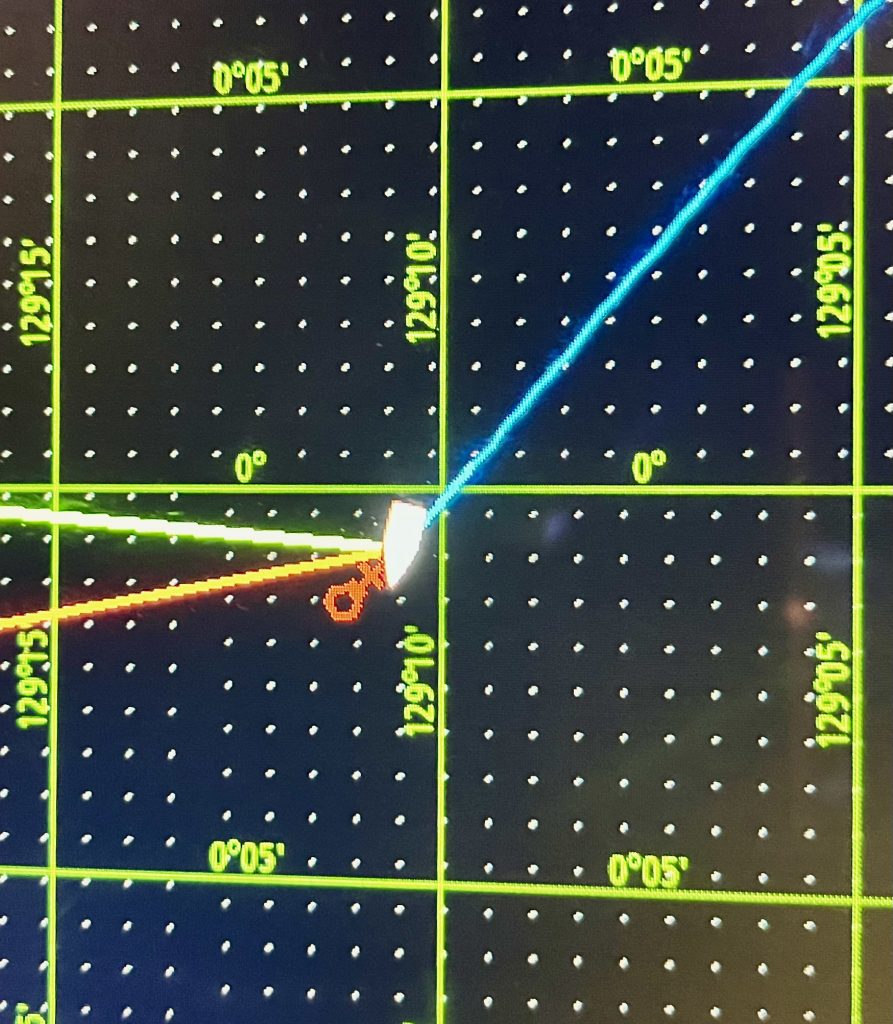 Das mit dem Kannibalismus bleibt mir im Kopf. Gab es doch da, ich glaube 2011, eine Geschichte von dort, die durch die Medien ging… Ein Segler fand auf einer dieser Inseln seinen Tod, und es blieben nur einige wenige Knochen von ihm übrig… ☠️. Jetzt aber mal wieder zurück zum Hier und Jetzt! Wir nähern uns unaufhaltsam dem Äquator, Klaus schläft und ich beschließe ihn schlafen zu lassen und bis einschließlich der Überquerung auf zu bleiben. Um 2:00 Uhr ist es soweit. Wir überschreiten die Mittellinie des Erdballs, verlassen die Nordhalbkugel und segeln auf die Südhalbkugel rüber. Toll‼️ Hier kommen die Beweise: