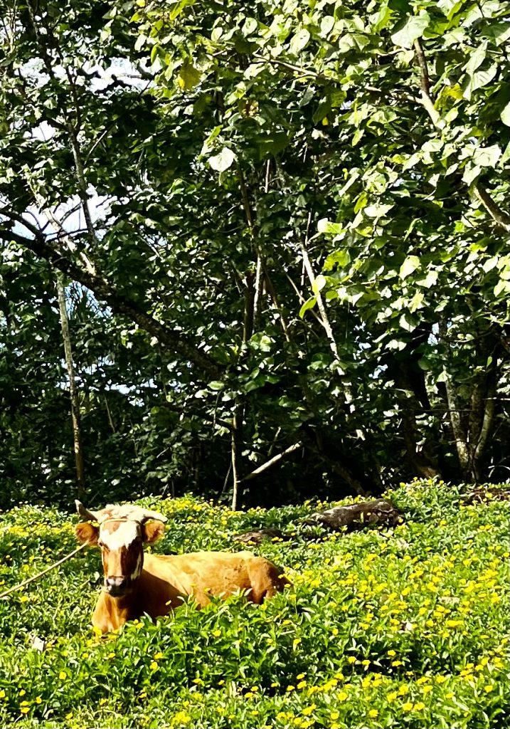 Dieses intensive Grün und Blau flasht mich immer wieder aufs Neue❣️Dann sind wir wohl da, so ganz sicher sind wir uns aber nicht. Unser Navi sagt, da vorne muss der Weg losgehen. Ein uns entgegenkommender Bewohner zeigt nach oben und wünscht uns Glück beim Aufstieg. 😳 In unserer Wegbeschreibung hieß es noch, der Weg sei schwer zu finden und eine Machete sollte zur Hand sein. Haben wir nicht. Nun geht es steil bergauf, durch Gestrüpp und hohes Grün. Hier und da ziehe ich es vor, auf allen Vieren hochzukrabbeln. Durchgeschwitzt und etwas zerkratzt kommen wir oben an und finden erstmal nur vereinzelte Steine, dann eine kleine Tempelplattform. Wir irren etwas herum, suchen den Trampelpfad, und plötzlich ruft Klaus, ich hab ihn, ich hab ihn!!