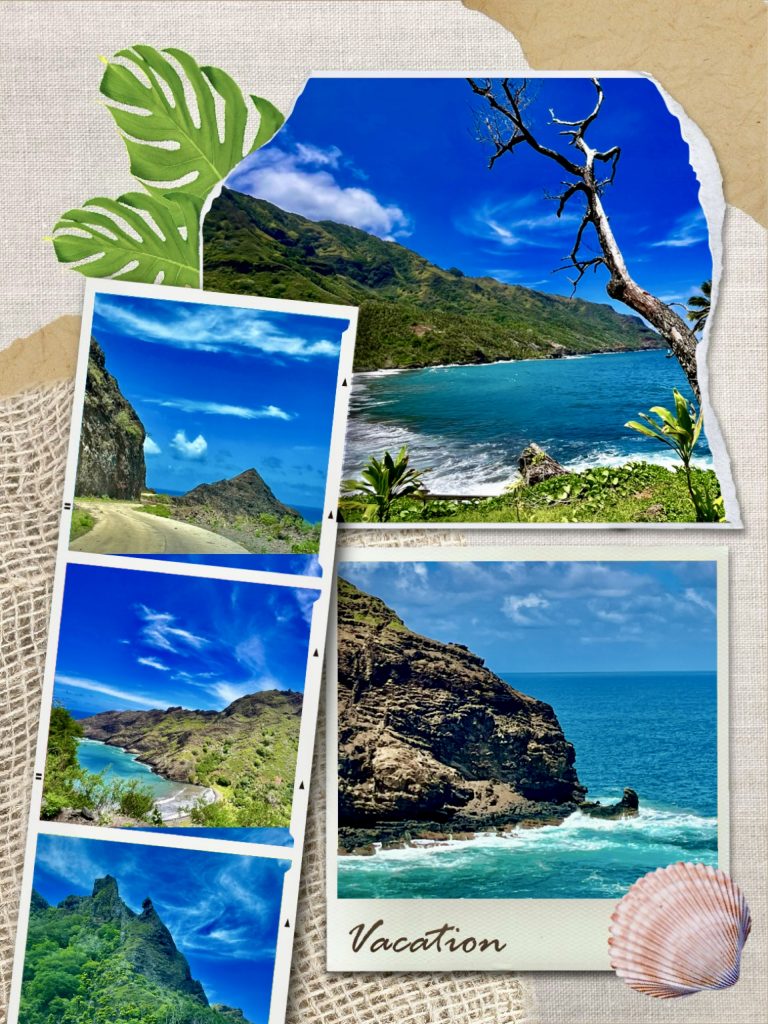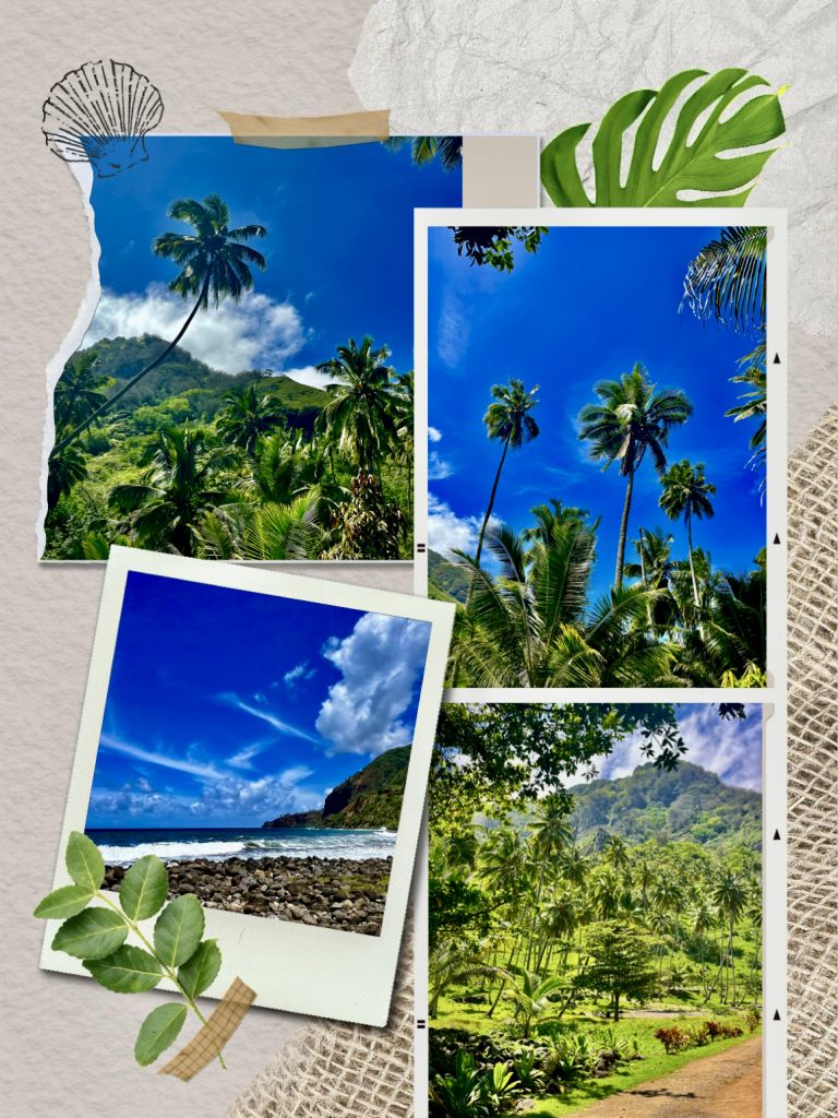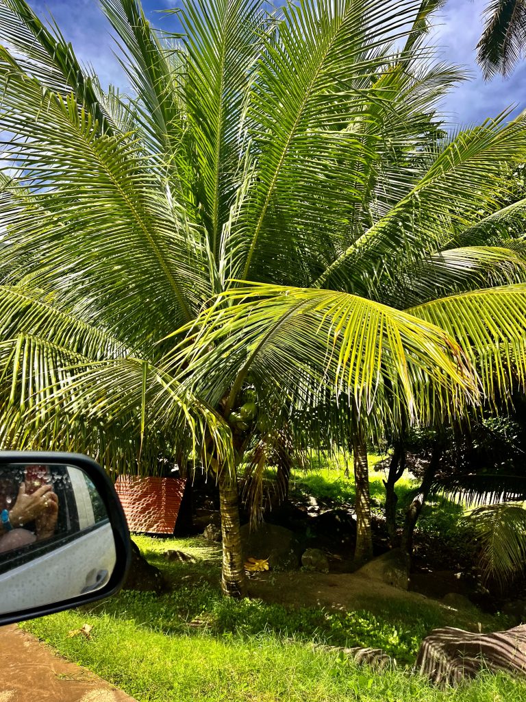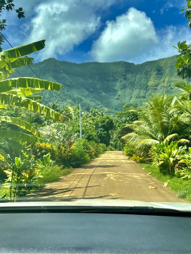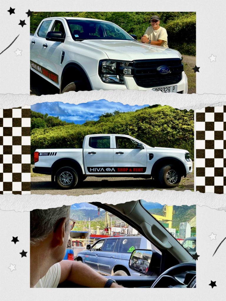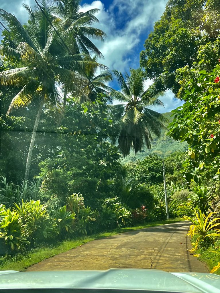 So, nun geht es weiter, wir wollen nach Hanapaaoa, zum Tiki Moeone. Im Dschungel auf einem Berg soll er sich verstecken. Wir wollen ihn finden! Doch zuvor machen wir Halt bei Snack Thérèse und genehmigen uns jeder einen großen, frischgepressten Fruchtshake und von Thérèse selbst gebackenen Biscuits. 😋 Jetzt aber weiter mit den 4 X 4 Pferdestärken…
