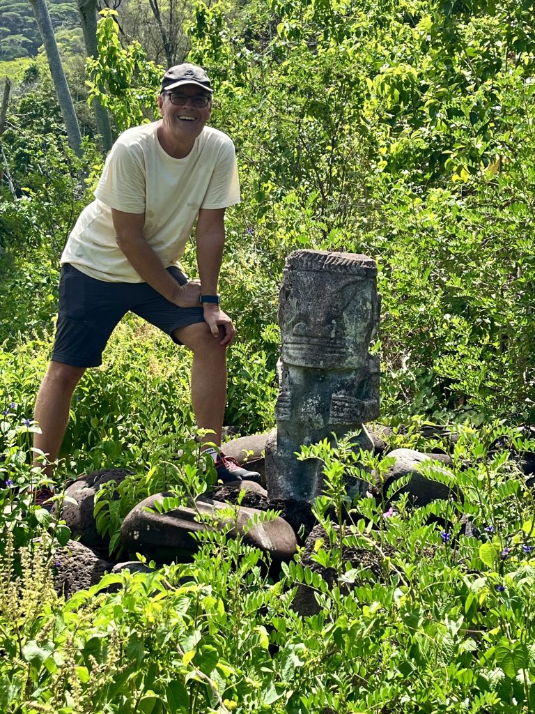 sah darin eher ein schwimmendes Tier, wie Figuren des Kaiman-Gottes anderer Kulturen. Nun ja, Kaimane gibt und gab es aber nicht auf den Marquesas. Uns präsentiert sich das Tiki übrigens so…