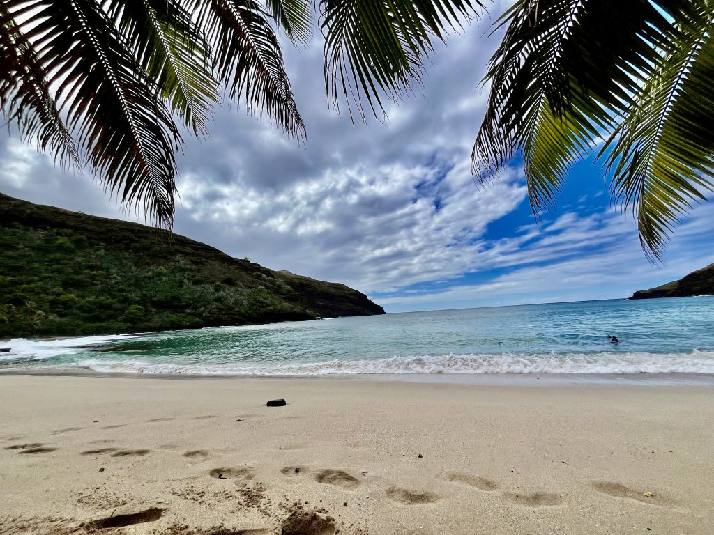 War was? Richtiges Timing eben! Es kommen immer 3 bis 4 Brecherwellen und dann ist erstmal wieder Ruhe. Okay, ich versuche es auch noch einmal. Diesmal schaffe ich es gut hinein zu kommen. Aber beim Raus bin ich nicht schnell genug und werde von einer Riesenwelle überrollt. Ich sah sie schon kommen, im Wissen, da komme ich nicht mehr vorher an Land. Also Brille festhalten, Luft schnappen, Augen zu und durch. Nu bin ich wieder voller Sand. Toll… 😵💫.