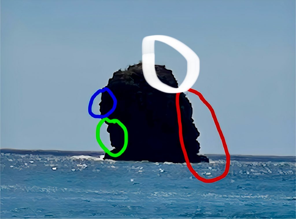 Da ist er ja wieder der schwarze Schwimmer. Und jetzt die Auflösung. Wieviele Gesichter hat dieser Felsen denn nun?