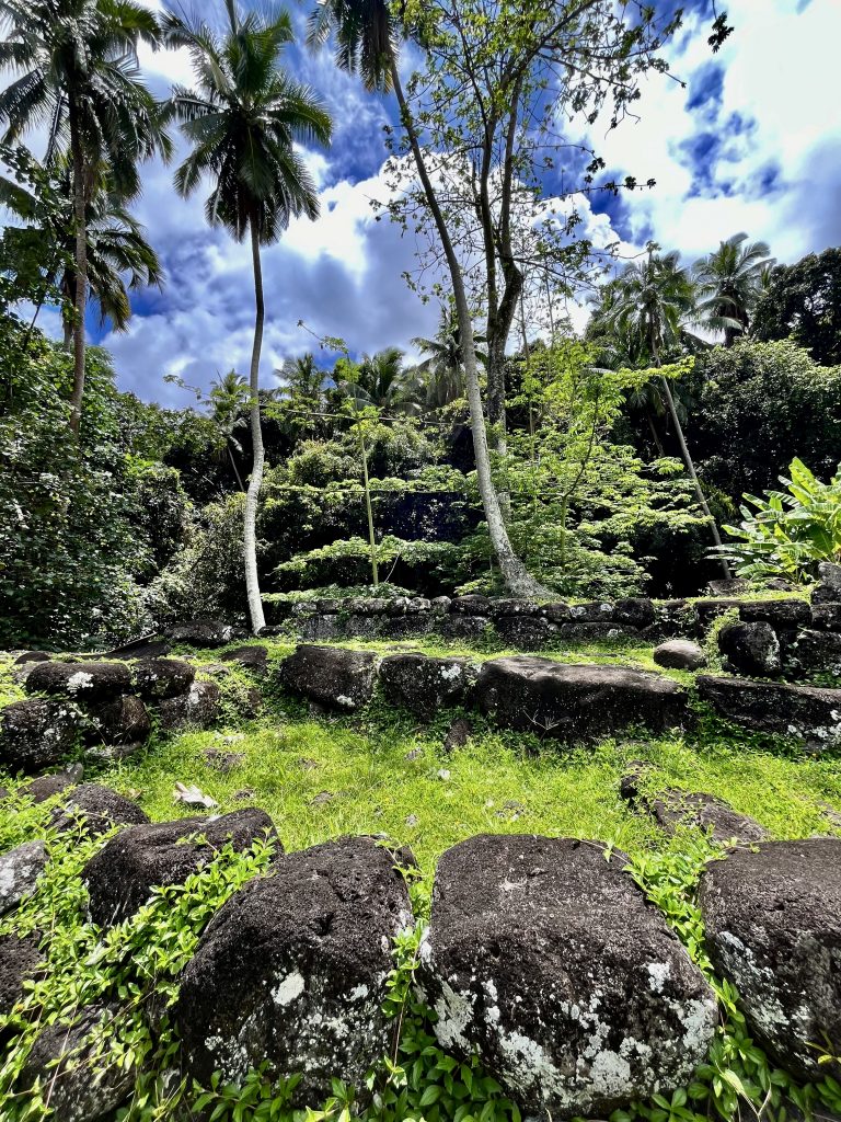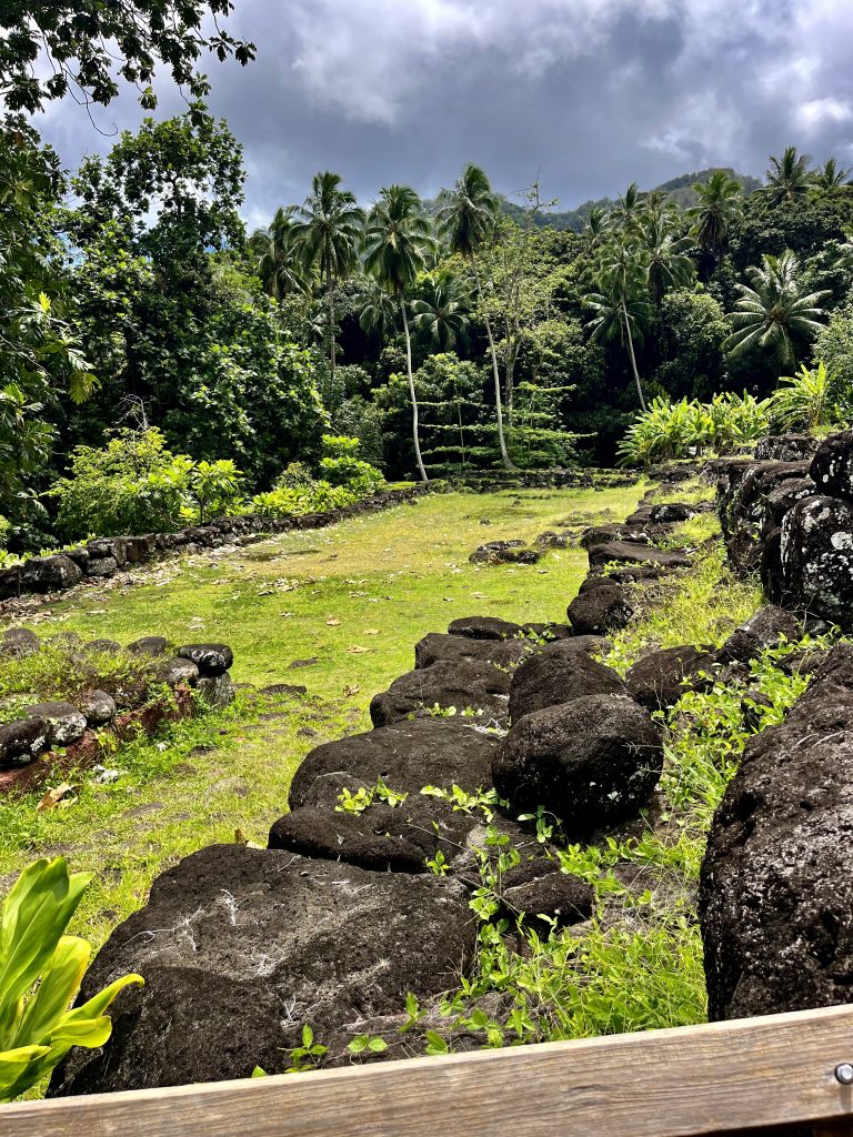 Nun geht es weiter zur heiligen, archäologischen Ausgrabungsstätte ‚Tohua Upeke‘ bei Taaoa.