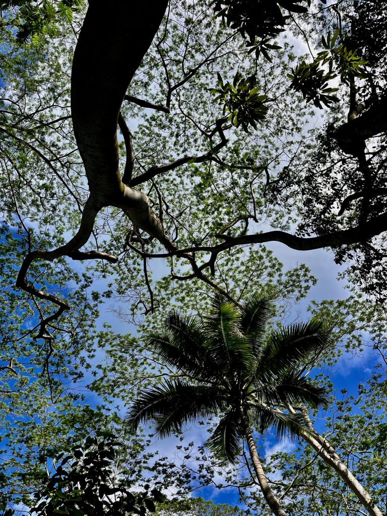 Der Weg führt uns runter in den Dschungel. Es ist ein wirklich schöner kurzer Abstecher zum Tiki, den wir aber erstmal wieder nicht finden.