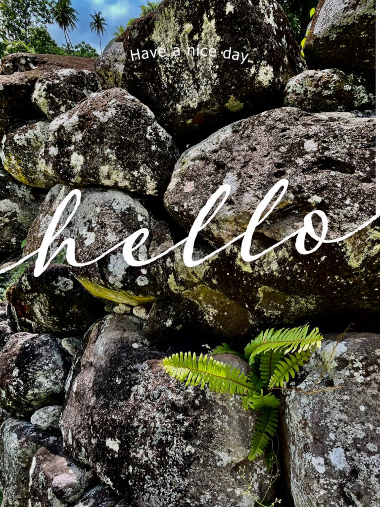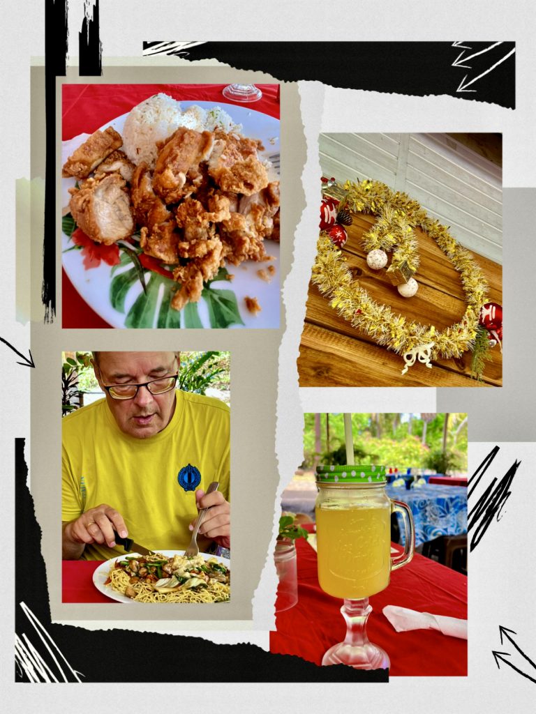 So, genug der archäologischen Kultstätte, wir wollen nochmal in die östliche Inselregion, um doch noch dem lachenden Tiki guten Tag zu sagen. Doch zuvor stoppen wir beim Snack Stop um etwas zu futtern. Und wer sitzt da schon? Der Österreicher mit seinen beiden Jungs… Die haben jeder Blumen im Haar und sehen aus wie Mädchen. Ich erkenne sie erst auf den zweiten Blick. Dann bekommen wir die Karte und stellen erfreut fest, dass es sich eher um ein Restaurant handelt, als um einen Snack Stop!