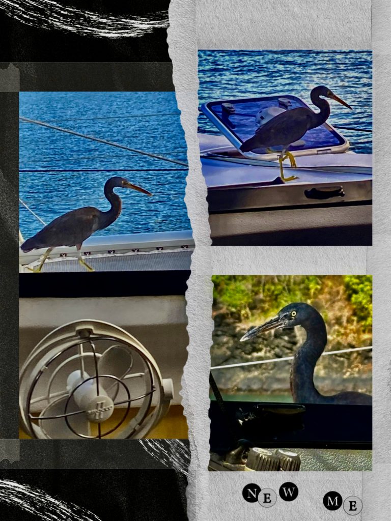 Er inspiziert das Boot und schaut keck durchs Fenster hinein. Und, er gibt immer kurz mit einem Krähen bekannt, dass er da ist. Lustig❣️