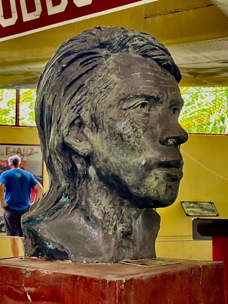 Interessant ist, das uns Jacques Brel, den wir vorher nicht auf der Agenda hatten, schon in Brasilien begegnete. Auf einer Wanderung zurück von Wasserfallrutschen, kam uns ein Mann mit Frau und Töchtern entgegen. Er, ein Franzose oder Belgier, kam sofort mit uns ins Gespräch. Manchmal passiert so etwas und schnell wurde uns Jacques Brel von ihm ans Herz gelegt. Er blühte sichtlich auf und kritzelte uns den Namen des Künstler auf ein Stück Papier. Diese Begegnung war irgendwie magisch und blieb mir fest im Hirn verankert. Hier, auf Hiva Oa schließt sich der Reigen.