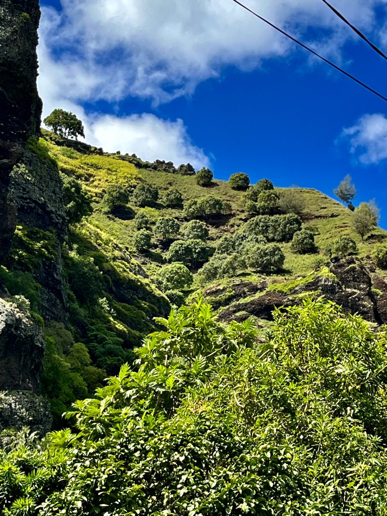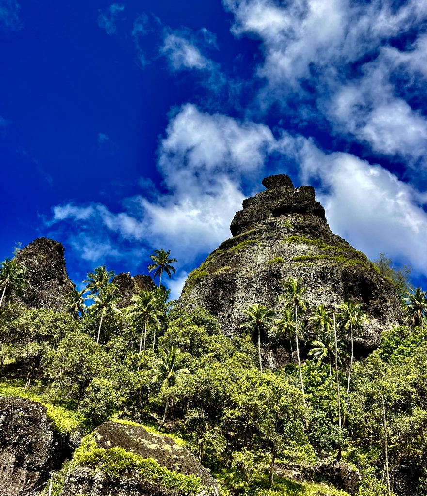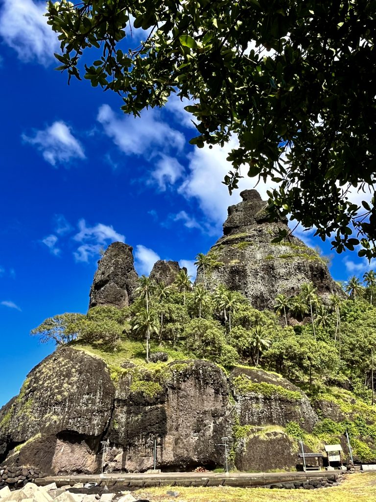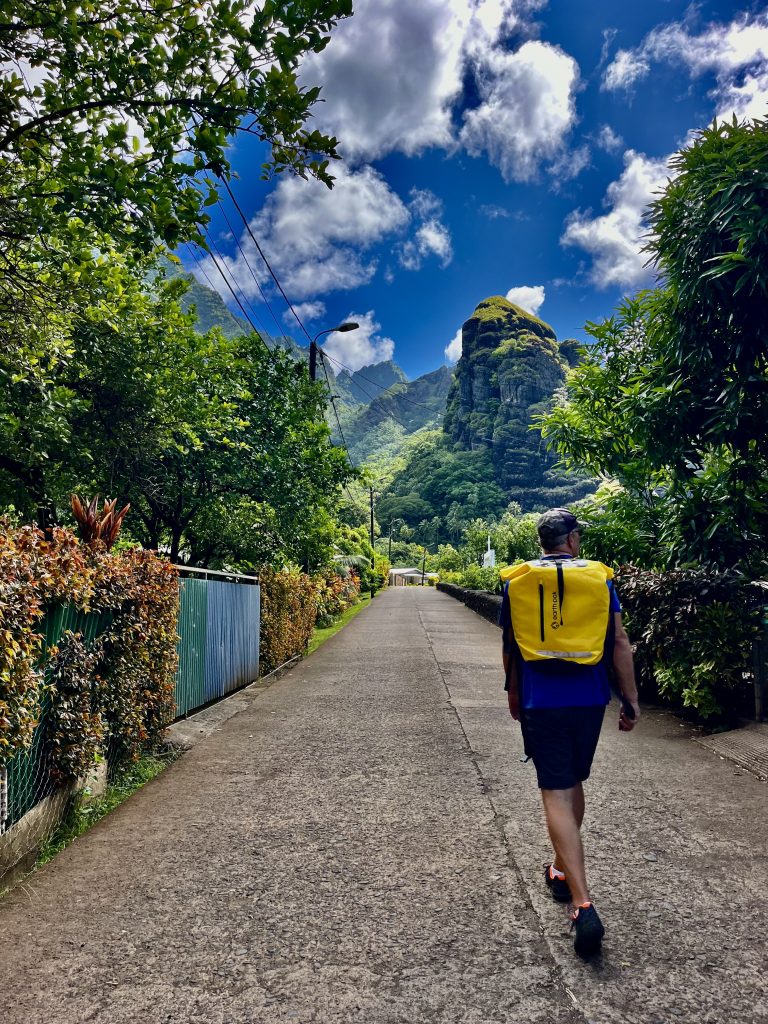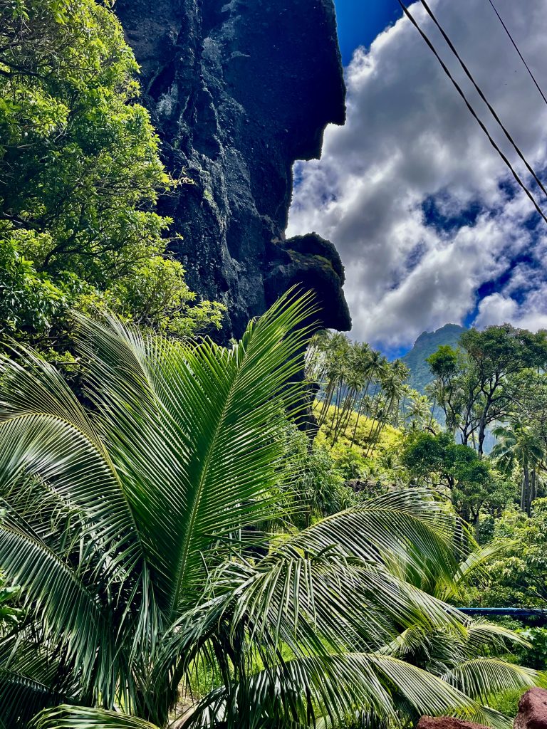 Der Supermarkt ist ein „Märktchen“ und très petit. Erstmal kaufen wir nur etwas zu trinken, Schweppes Citrón, Wasser und Kekse, wir wollen noch weiter rumlaufen und uns umschauen. Doch schnell werden wir im Märktchen auf deutsch angesprochen… Ein deutsch-französisches Paar in unserem Alter „quatscht uns von der Seite an“. So würde das meine liebe Schwiegermama bezeichnen. 😂 Wir haben sofort Spaß miteinander und schwingen auf einer Welle. Sie, Stuttgarterin, er Franzose aus Bordeaux. Beide fließend dem Französischen und Deutschen mächtig, beide Vielreisende. Eben waren sie noch in Japan, jetzt sind sie hier auf den Marquesas, wo sie schon vor vielen, vielen Jahren waren und nun die Orte der Vergangenheit besuchen. Sie sind unterwegs per Flieger und Schiff selbst organisiert und so wie es gerade passt, bis sie wieder Zwischenstation machen werden in ihrem Zuhause in Bordeaux. Sehr interessant! Wir werden uns noch öfter begegnen…