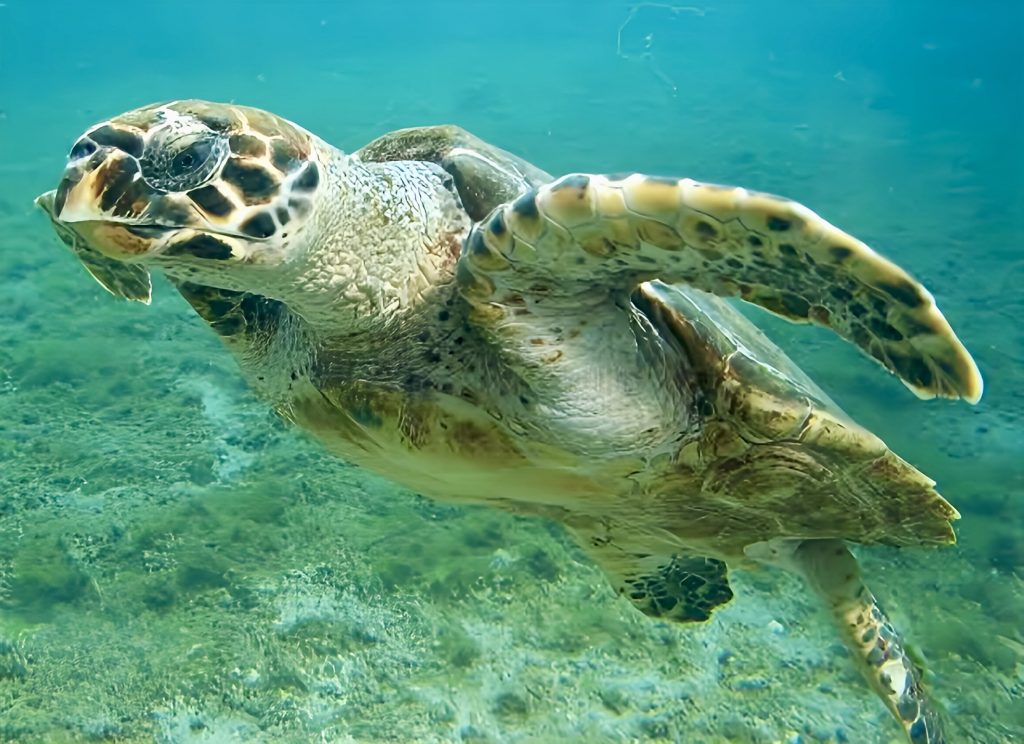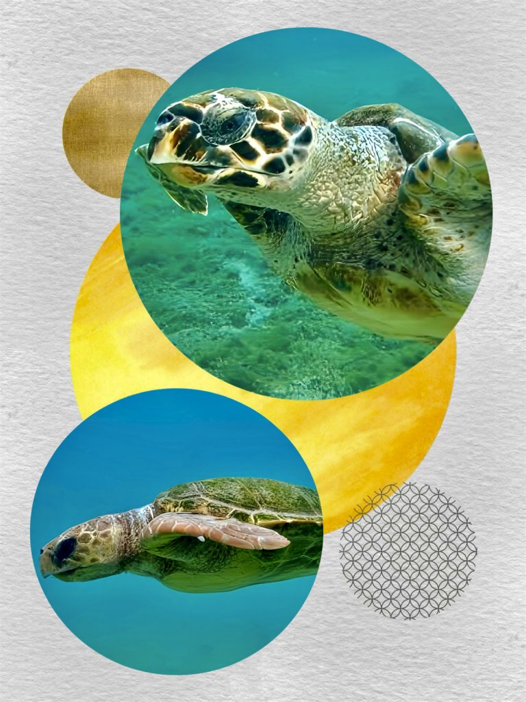 Er dreht dann auch schnell wieder ab. Der zweite interessiert sich gar nicht für mich und zieht unablässig und elegant seine Kreise. Beide sind jetzt nicht besonders groß. Da passt ja dann auch die Bezeichnung “Babymanta-Bucht”. Ich folge noch kurz der Schildkröte,