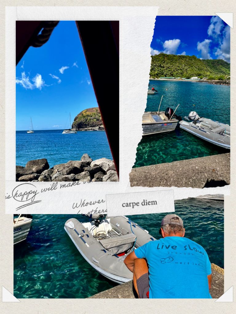 Am Dinghy Dock kommt sofort ein Einheimischer mit seiner 9-jährigen Tochter angesprungen. Sie helfen uns anzulanden. Die Kleine streckt mir die Hand entgegen und zieht mich an Land. Mutig! Ich hätte sie auch aus Versehen runter ziehen können, ungewollt natürlich! 🤭