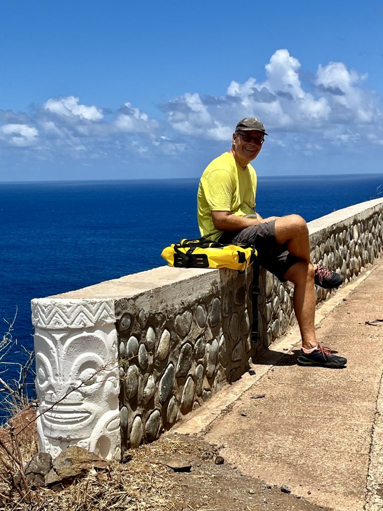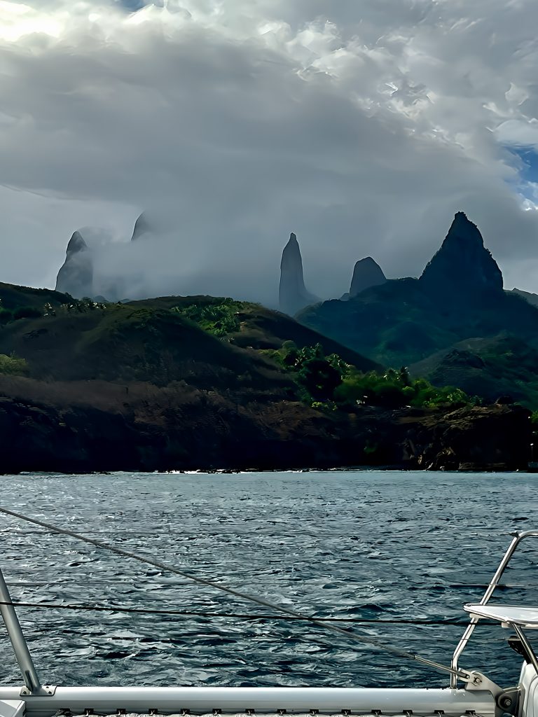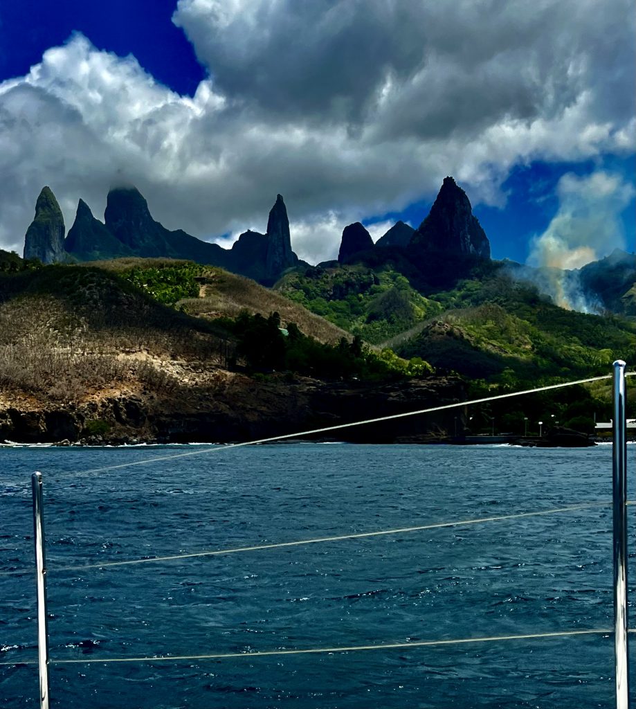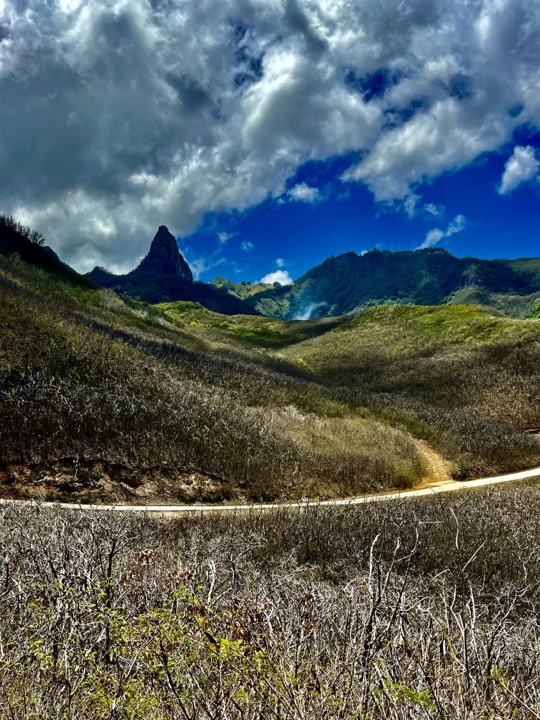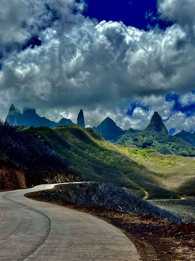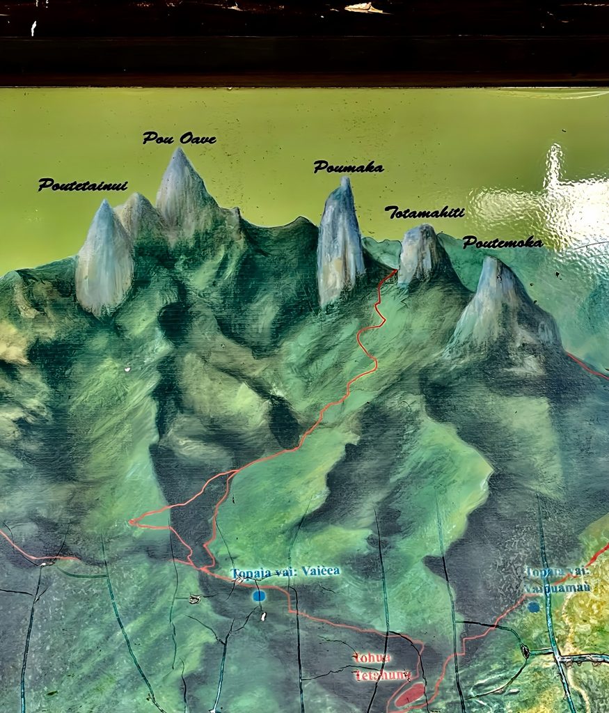 Jede Basaltsäule hat ihren eigenen Namen. In die Bedeutung der Bergnamen fließt Mythologie, Ortsbezeichnung und Ahnenverehrung ein. Pou Oave zum Beispiel, könnte aber auch platt übersetzt für großen Pfahl, Stamm, Tiki, etc. stehen. So ganz eindeutig ist die Sprache der Polynesier ja nicht gerade. Sie war ja auch schon fast vergessen und von den Franzosen fast ausgerottet worden. Genauso wie die unglaubliche Tätowierkunst, die von den Missionaren verboten und unter Strafe gestellt wurde. Seit einigen Jahrzehnten, versuchen sie ihre Kultur wieder aufleben zu lassen. So, und wir leben auch wieder auf, erheben uns uns stiefeln weiter.
