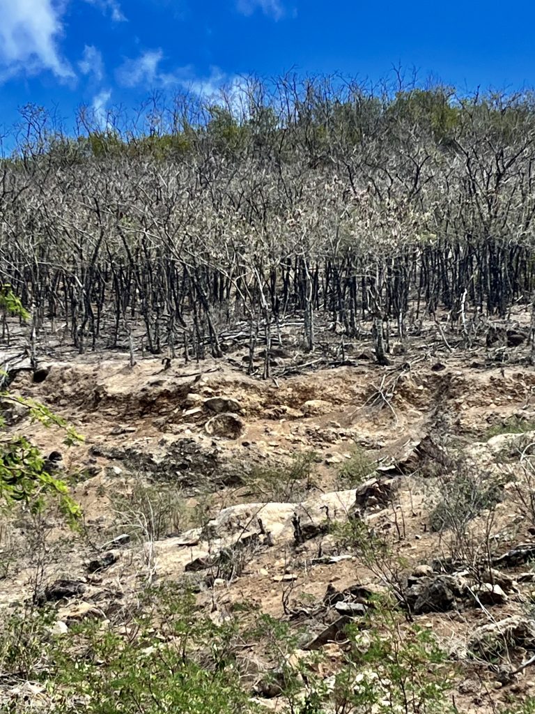 Dabei kommen wir an vielen, ehemals verbrannten Flächen vorbei.