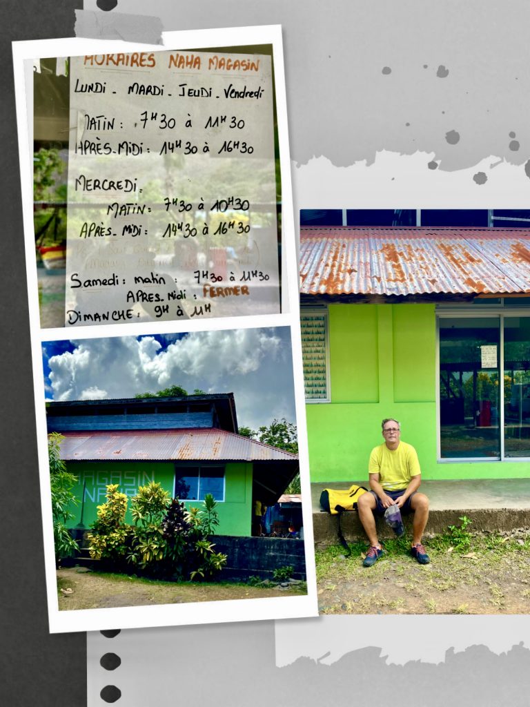 Nun geht es wieder zurück, zurück zum Supermärktchen. Und tataaa 🥳, er ist geöffnet. Viel hat er wahrlich nicht im Angebot. Dennoch erzeugen wir für einen wirklich kleinen Einkauf eine große Rechnung.